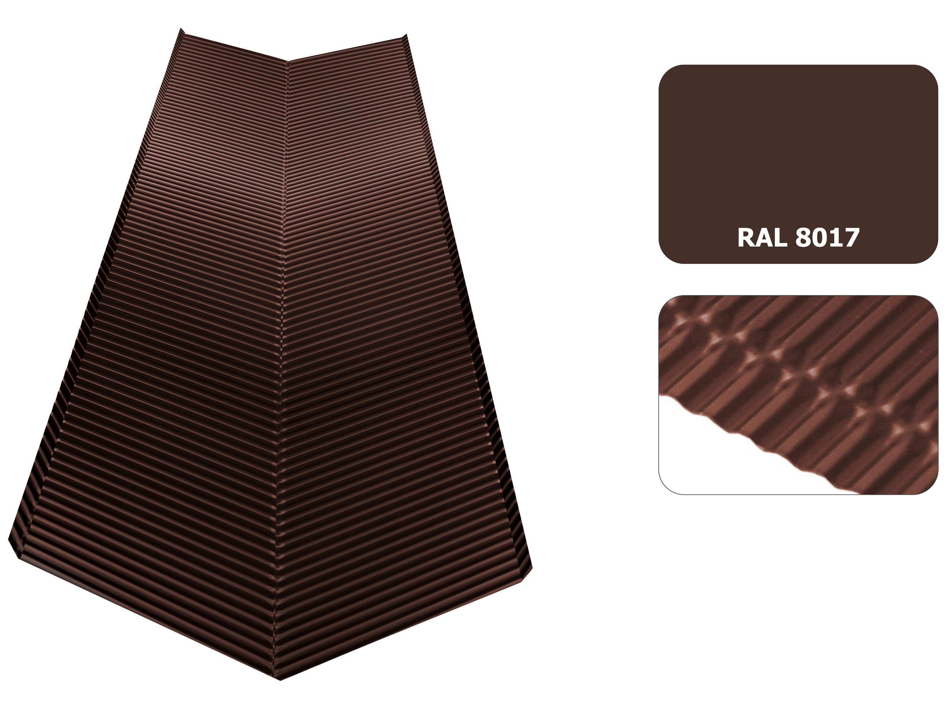 Kosz dachowy poprzecznie tłoczony, wykonany z blachy aluminiowej o grubości 0,55 mm. Pokryty farbą poliestrową z lakierowaną powłoką zabezpieczoną dodatkowo folią polipropylenową, usuwaną podczas montażu kosza.