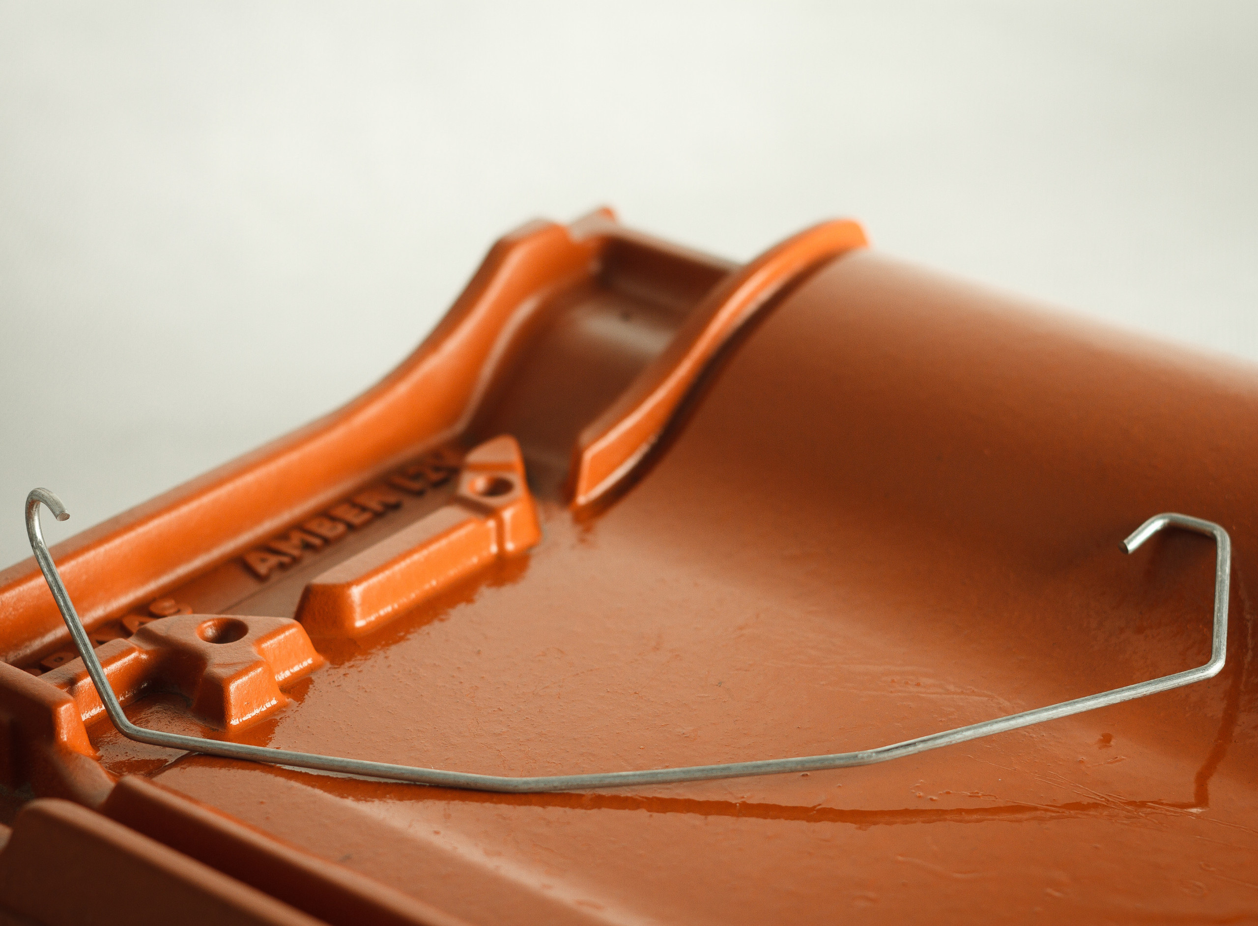 Spinka J416 znajduje zastosowanie w dachówkach posiadających odpowiednio ukształtowany dolny rant lub otwór montażowy, umożliwiający skuteczny zaczep i stabilny docisk do łaty dachowej.