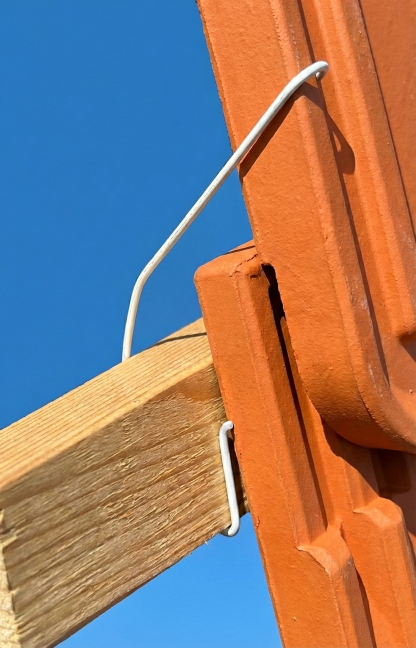 - zastosowanie cieńszego drutu sprężynowego Ø 1,8 mm zamiast standardowego Ø 2,5 mm, co zmniejsza grubość mocowania i ogranicza efekt podbijania dachówki,