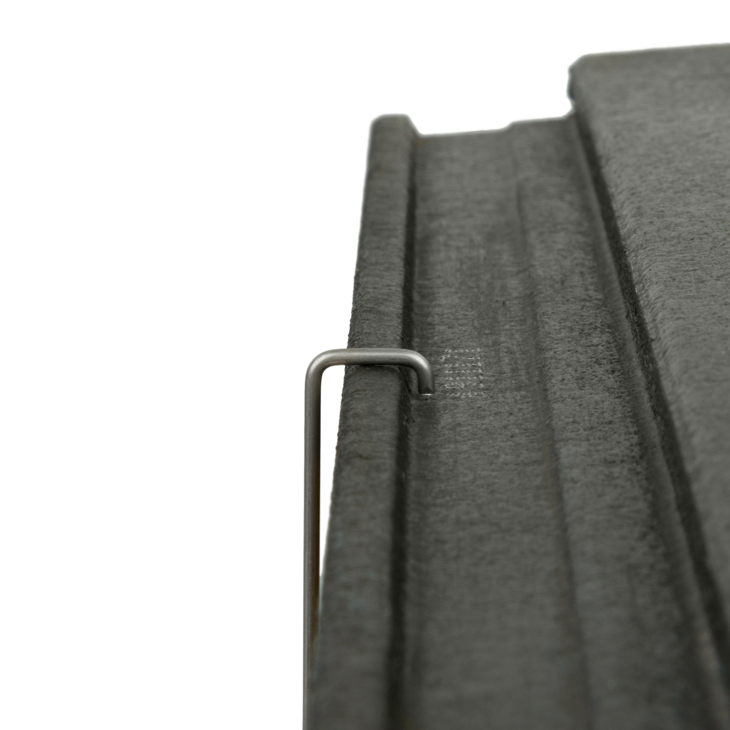 Spinka do dachówek płaskich (betonowych i ceramicznych). Spinka została zaprojektowana z myślą o dachówkach płaskich, gdzie szczególnie istotne jest ograniczenie efektu unoszenia dachówek.