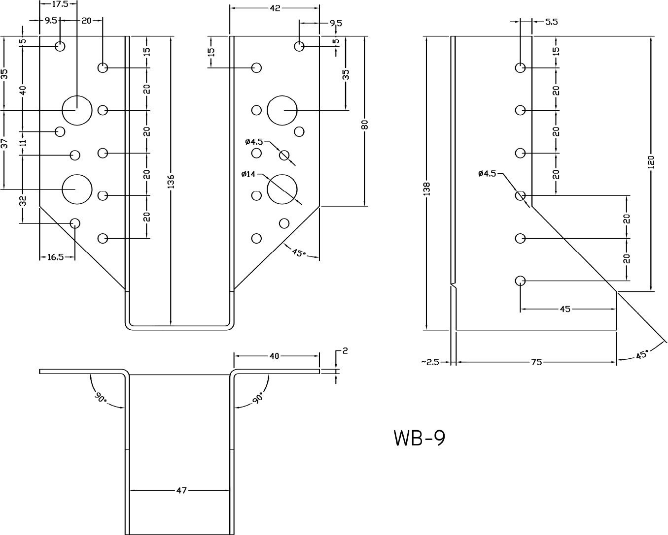 WB-09 - 47 mm x 136 mm x 75 mm x 2 mm