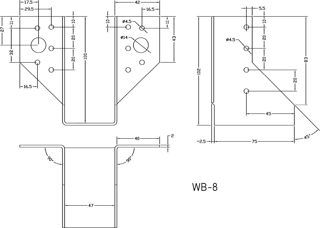 WB-08 - 47 mm x 100 mm x 75 mm x 2 mm