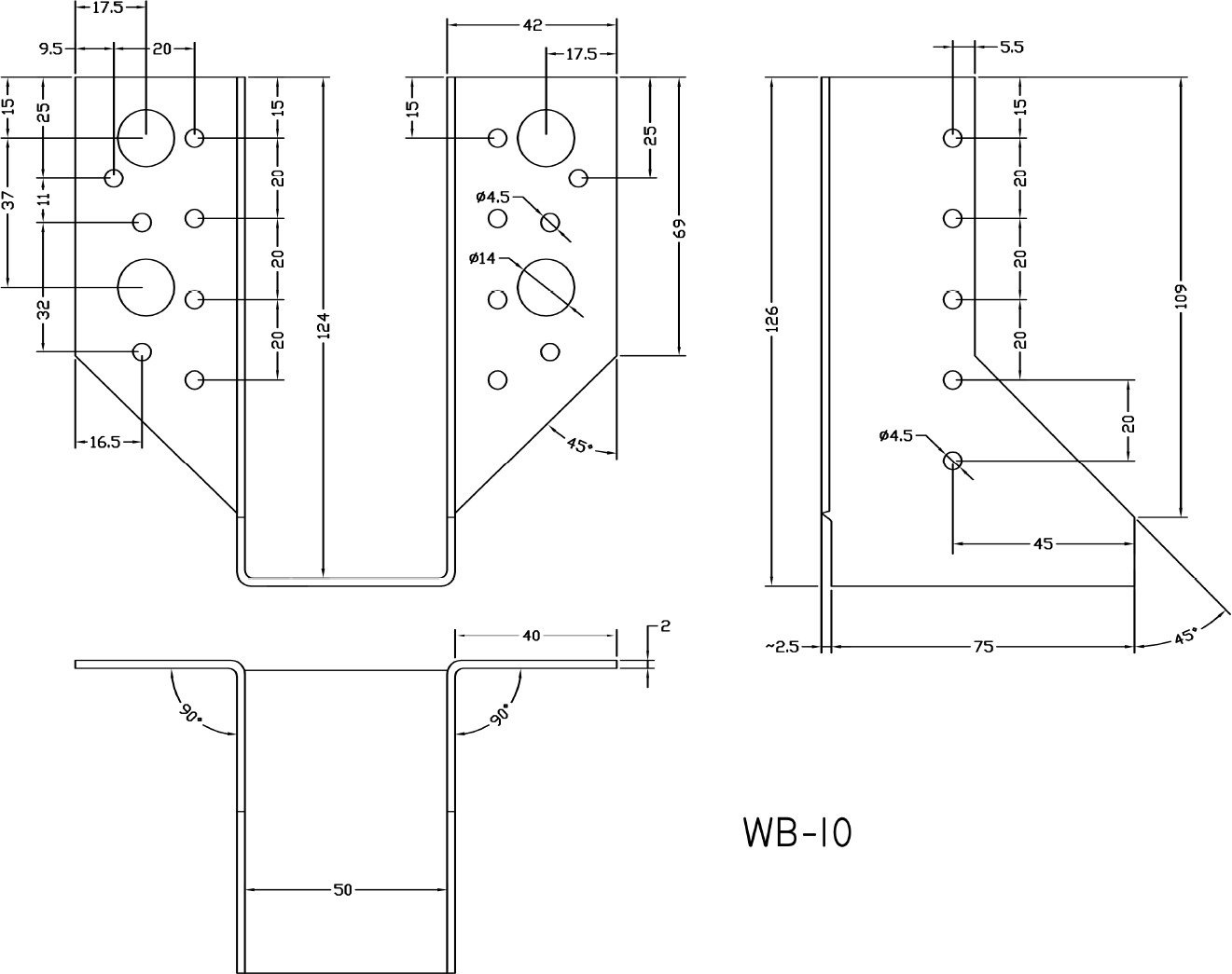 WB-10 - 50 mm x 124 mm x 75 mm x 2 mm