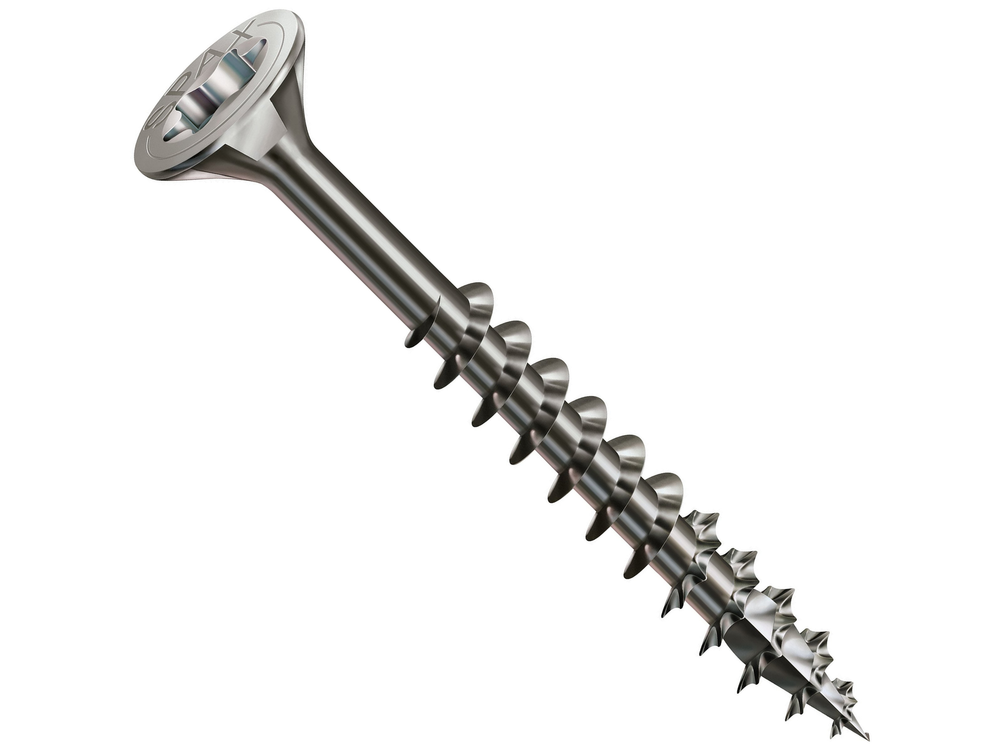 Wkręt uniwersalny hartowany z główką stożkową, pokryty powłoką zmniejszającą tarcie. Wykonany ze szlachetnej stali nierdzewnej A2(II). Gniazdo SPAX T-STAR plus, główka SPAX MULTI, szpic SPAX 4CUT, gwint częściowy.