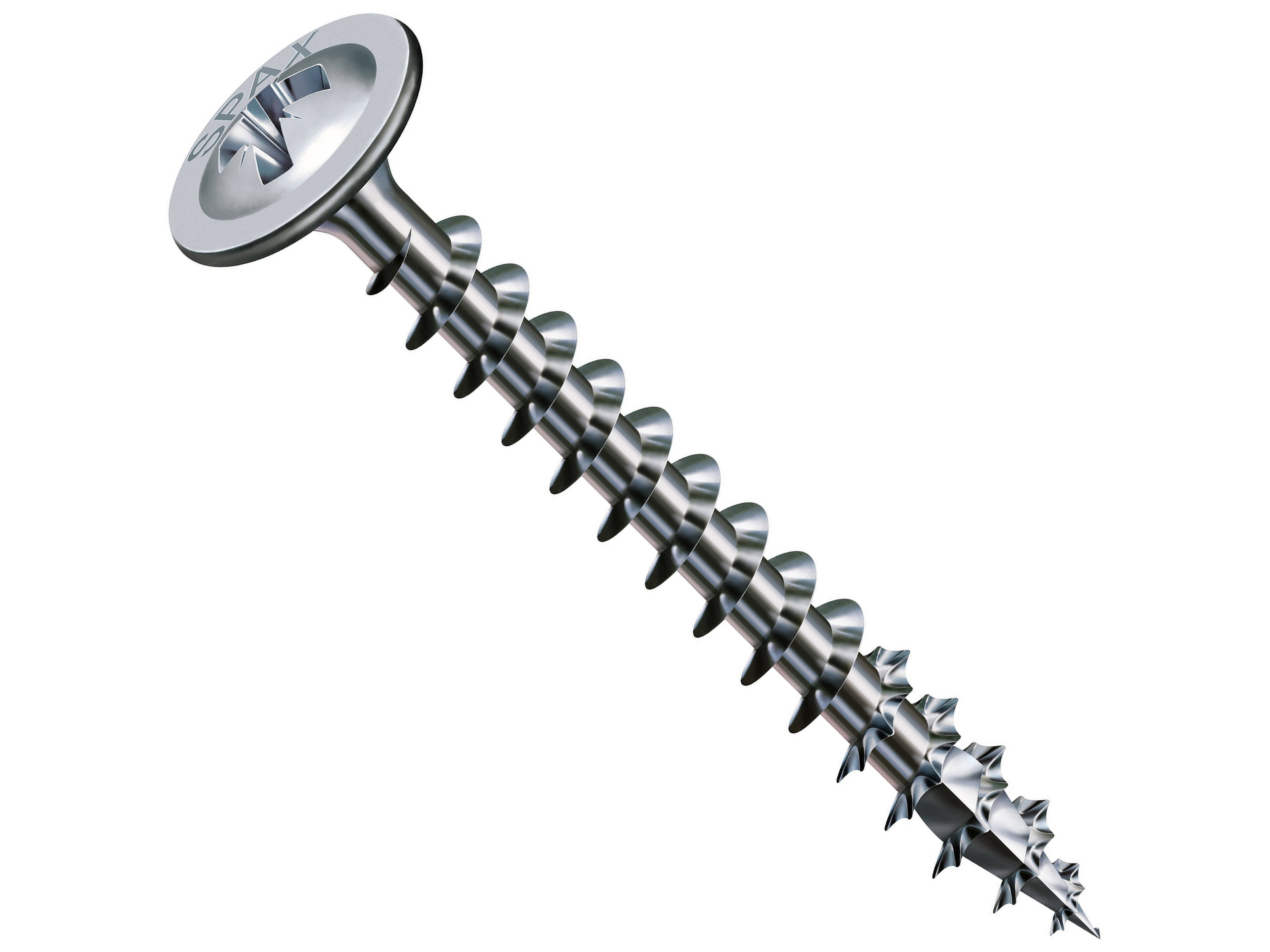 Spax główka Multi Frezuje w drewnie, hamuje na metalu. SPAX z główka MULTI posiada cofnięte segmenty. Między pojedynczymi segmentami tworzą się kanty, które przy kontakcie z drewnem powodują frezowanie. Główka wchodzi w materiał czysto i gładko. Jeśli do mocowania okuć metalowych stosowane są wkręty SPAX z główką MULTI, to niecofnięta powierzchnia materiału hamuje wkręt w okuciu, zapobiegając przekręceniu wkręta. Powstaje solidne połączenie między okuciem metalowym a elementem budowlanym. Powierzchnie nie są zniszczone.