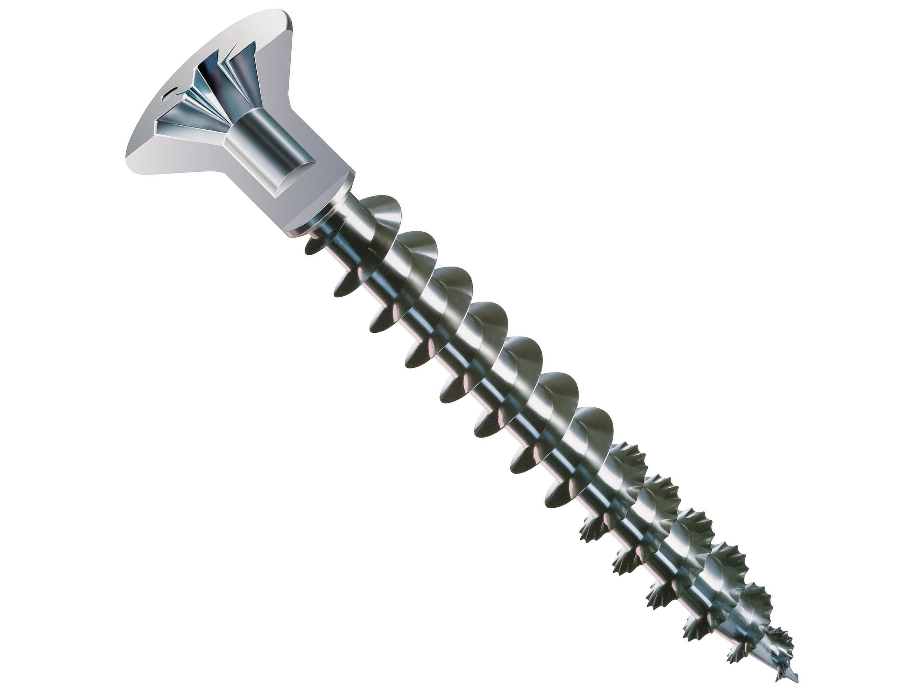 Wkręt uniwersalny hartowany z główką stożkową z otworem na zaślepkę (Ø2,5 mm), pokryty powłoką zmniejszającą tarcie. Ocynkowany (stal A2J). Gniazdo Pz, gwint pełny.