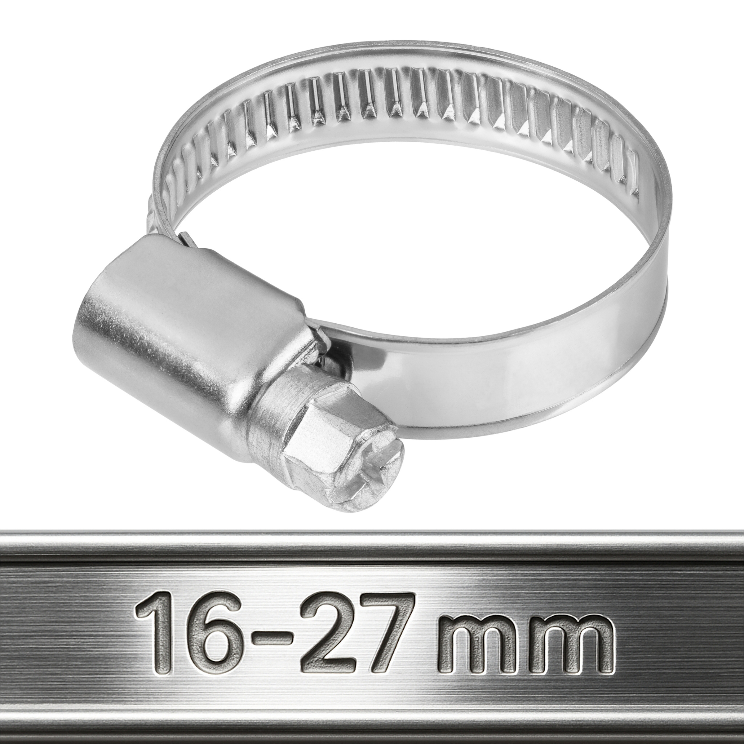 • Opaski ślimakowe ze stali nierdzewnej W2 16–27 mm (10 szt.)