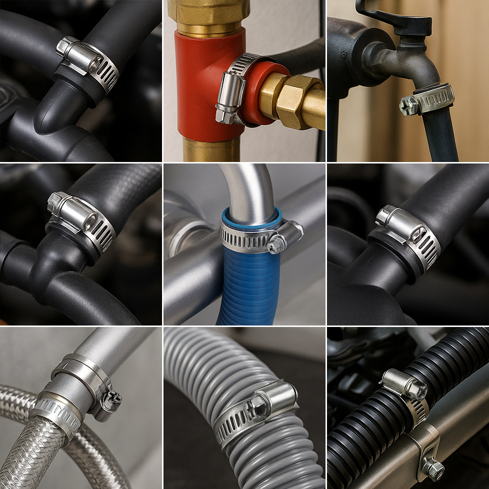 Mocowanie węży wodnych, paliwowych i powietrznych w motoryzacji, domu, ogrodzie i przemyśle.