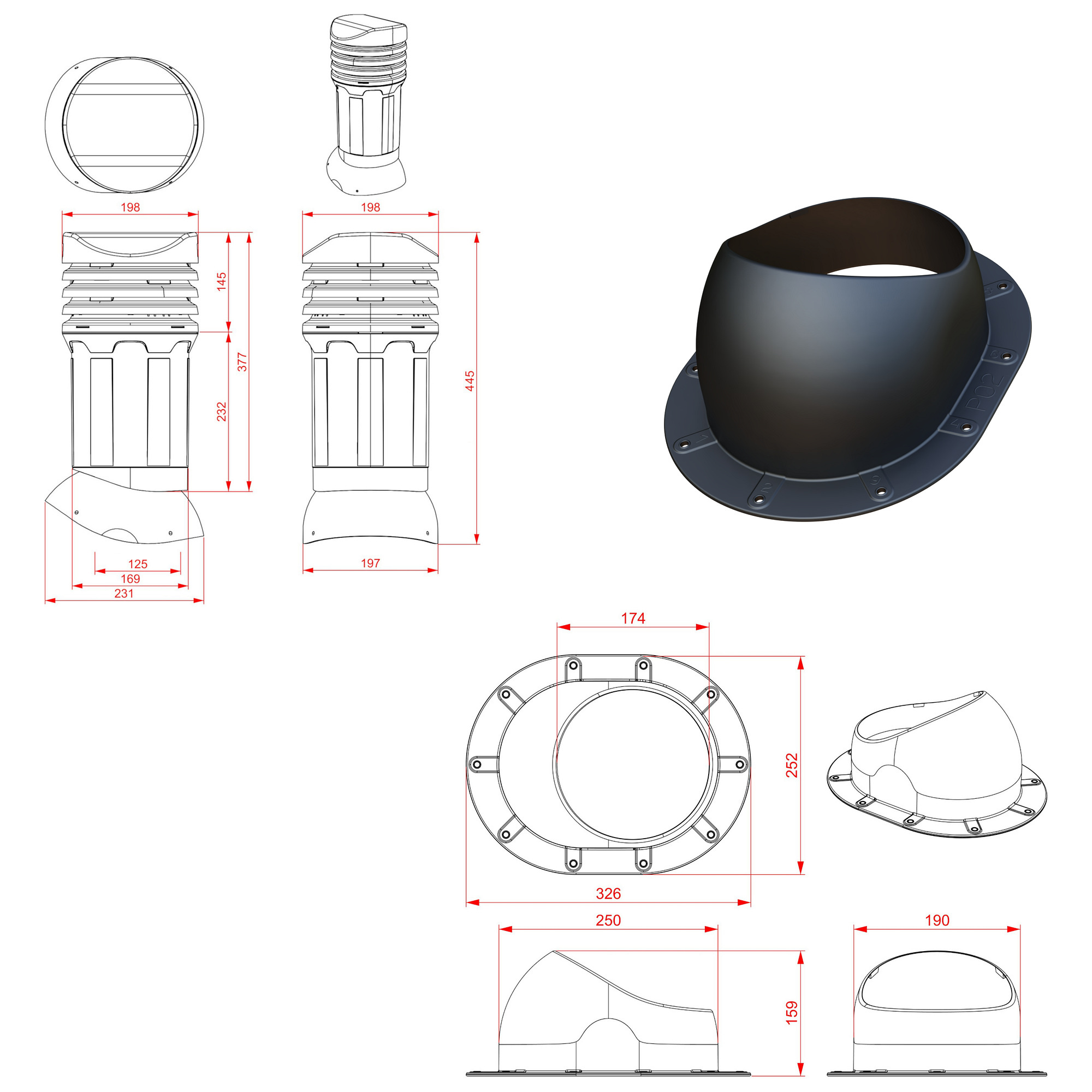 • Kompletny kominek wentylacyjny z przejściem dachowym, montowany na pokryciach płaskich Skutecznie odprowadza skropliny na pokrycie dachowe. Do wyboru wiele typów przejść dopasowanych do najpopularniejszych pokryć w Polsce. Szeroki wybór kolorów.