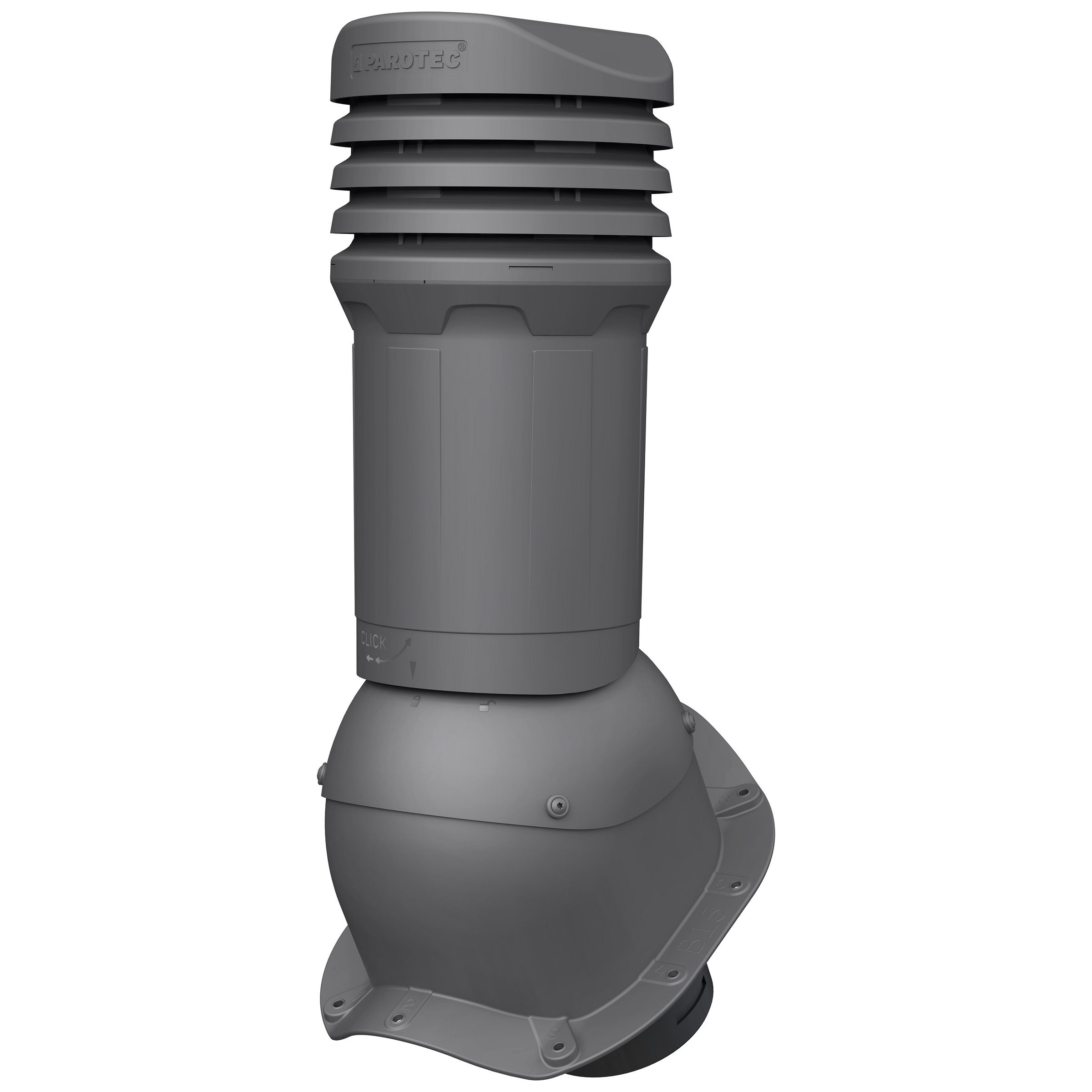 Kompletny kominek wentylacyjny z profilowanym przejściem dachowym, montowany bezpośrednio na blachodachówce. Specjalne kanały odprowadzają skropliny (kondensat) na pokrycie dachowe.
