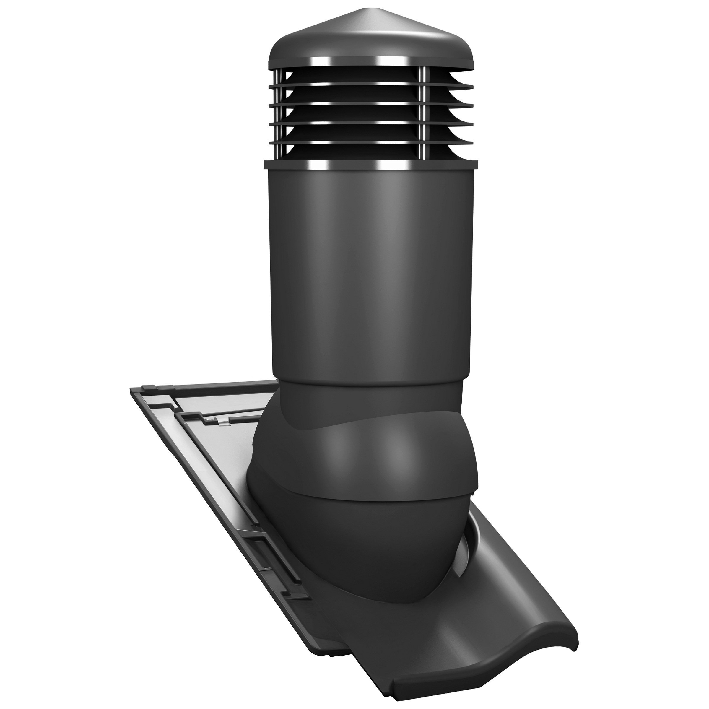 TILE PLUS DN 125 - Kompletny kominek wentylacyjny z profilowanym przejściem dachowym, montowany bezpośrednio na dachówce. Wersja izolowana, która zapobiega kondensacji pary wodnej w przewodzie wentylacyjnym, najczęściej zauważalnej w okresie zimowym.