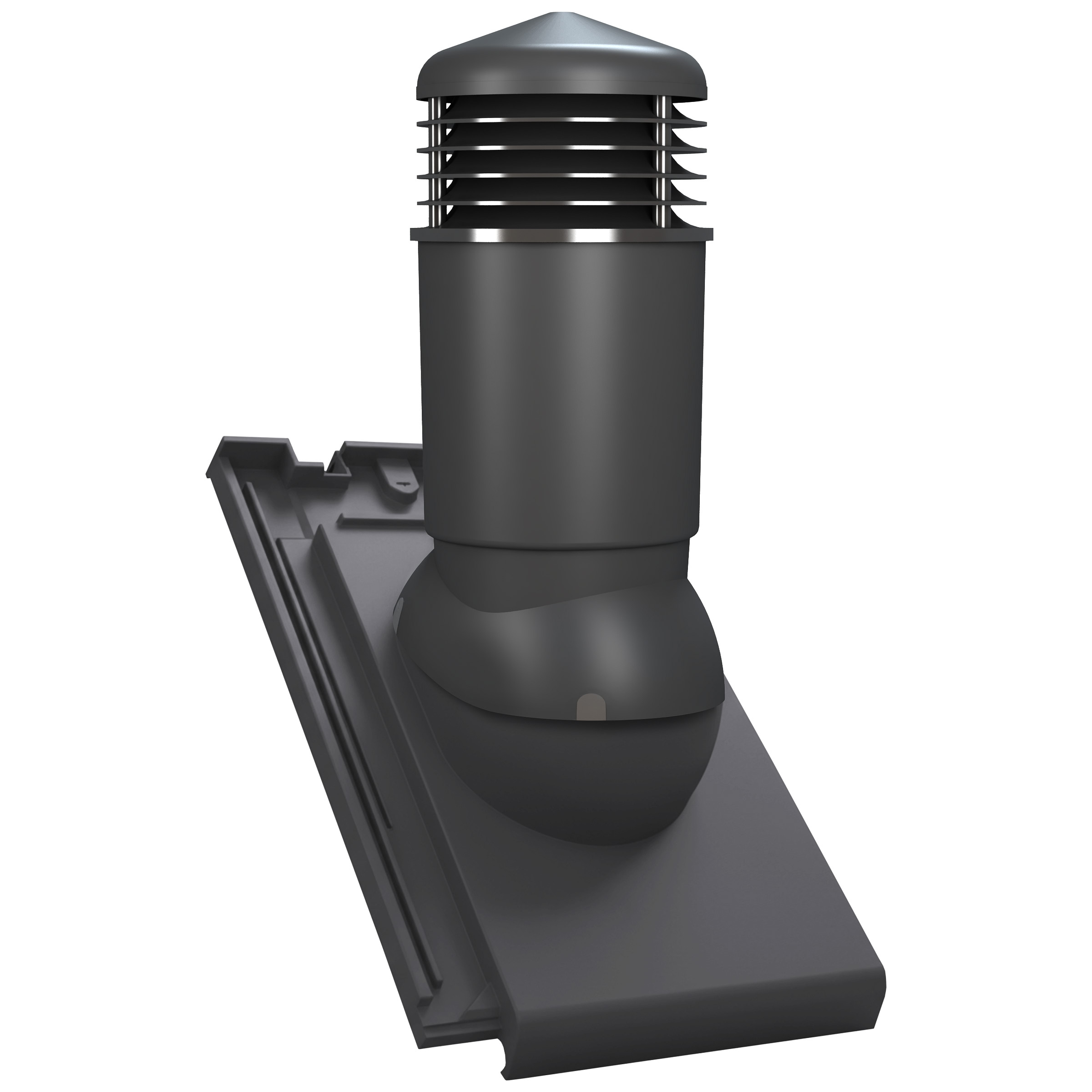 TILE PLUS DN 125 - Kompletny kominek wentylacyjny z profilowanym przejściem dachowym, montowany bezpośrednio na dachówce. Wersja izolowana, która zapobiega kondensacji pary wodnej w przewodzie wentylacyjnym, najczęściej zauważalnej w okresie zimowym.