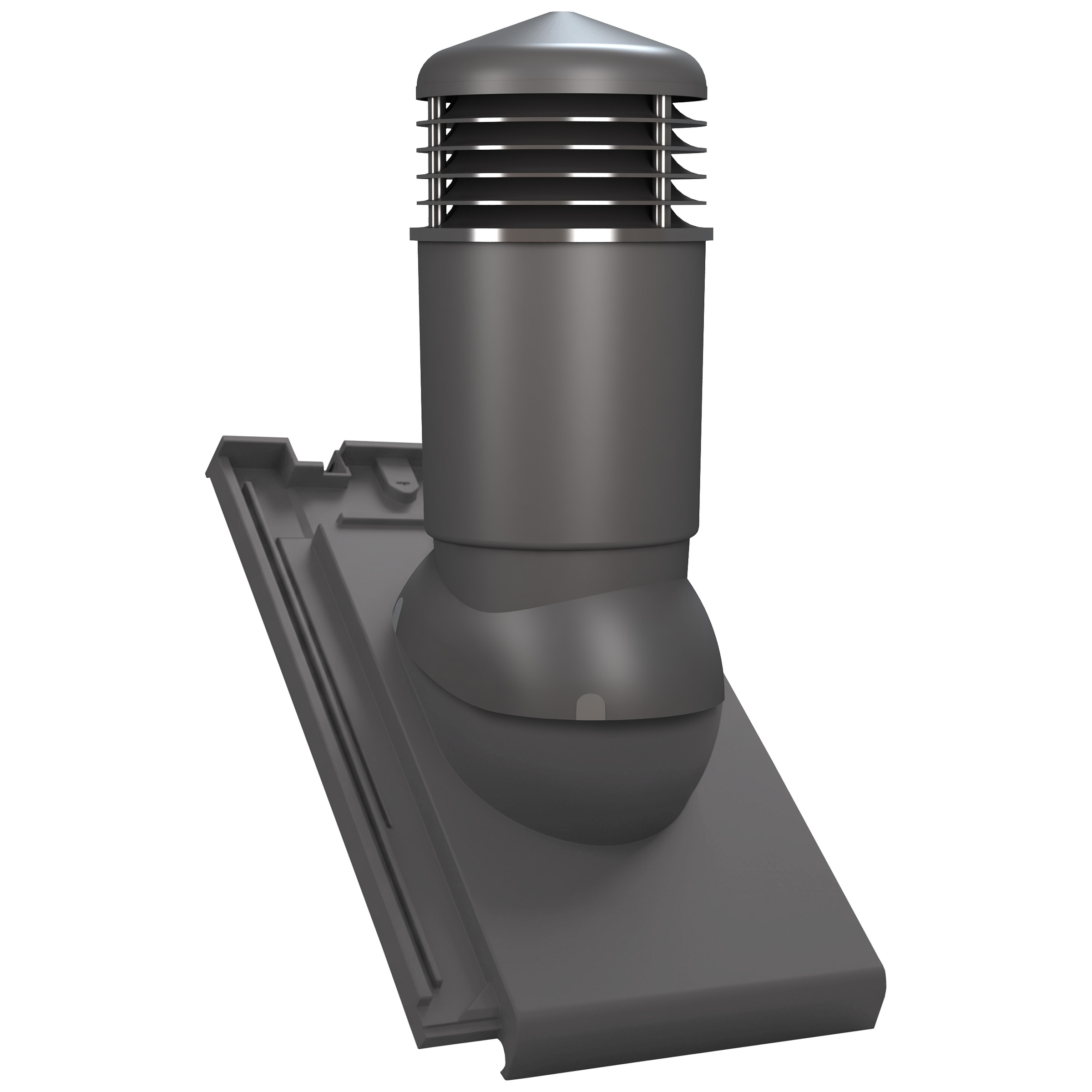 TILE PLUS DN 125 - Kompletny kominek wentylacyjny z profilowanym przejściem dachowym, montowany bezpośrednio na dachówce. Wersja izolowana, która zapobiega kondensacji pary wodnej w przewodzie wentylacyjnym, najczęściej zauważalnej w okresie zimowym.