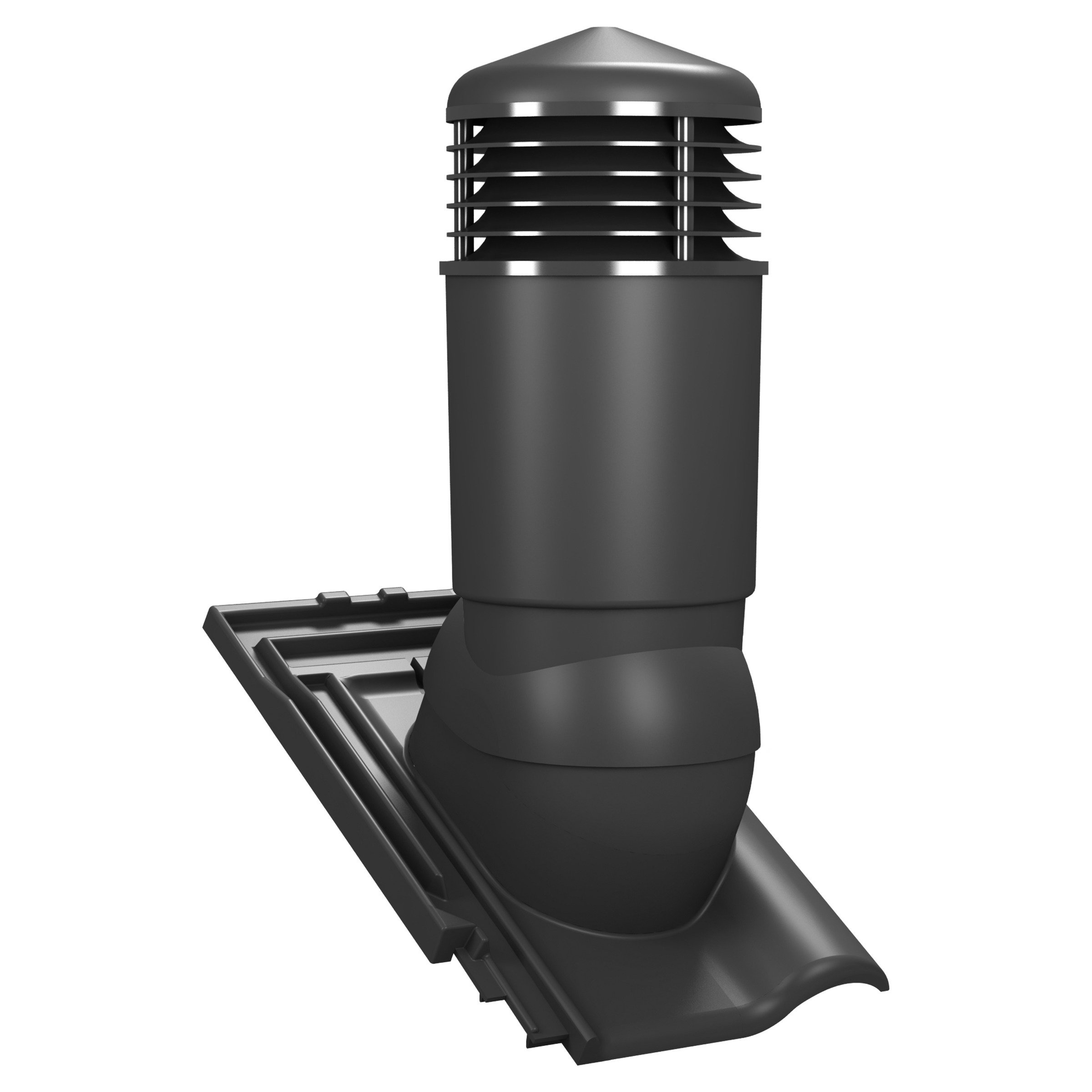 TILE PLUS DN 125 - Kompletny kominek wentylacyjny z profilowanym przejściem dachowym, montowany bezpośrednio na dachówce. Wersja izolowana, która zapobiega kondensacji pary wodnej w przewodzie wentylacyjnym, najczęściej zauważalnej w okresie zimowym.