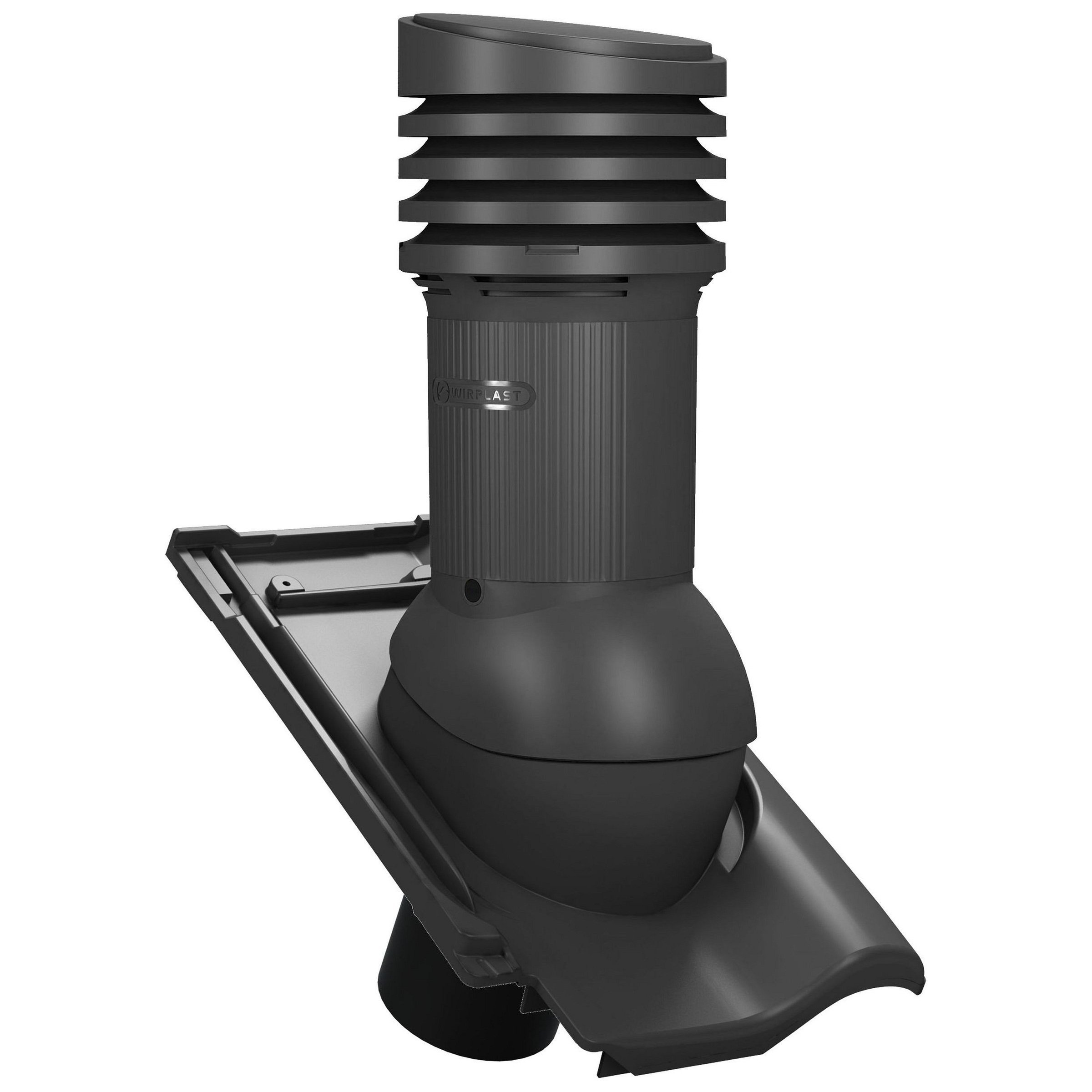 TILE EVO DN 125 - Kompletny kominek wentylacyjny z profilowanym przejściem dachowym, montowany bezpośrednio na dachówce. Specjalne kanały odprowadzają skropliny (kondensat) na pokrycie dachowe.