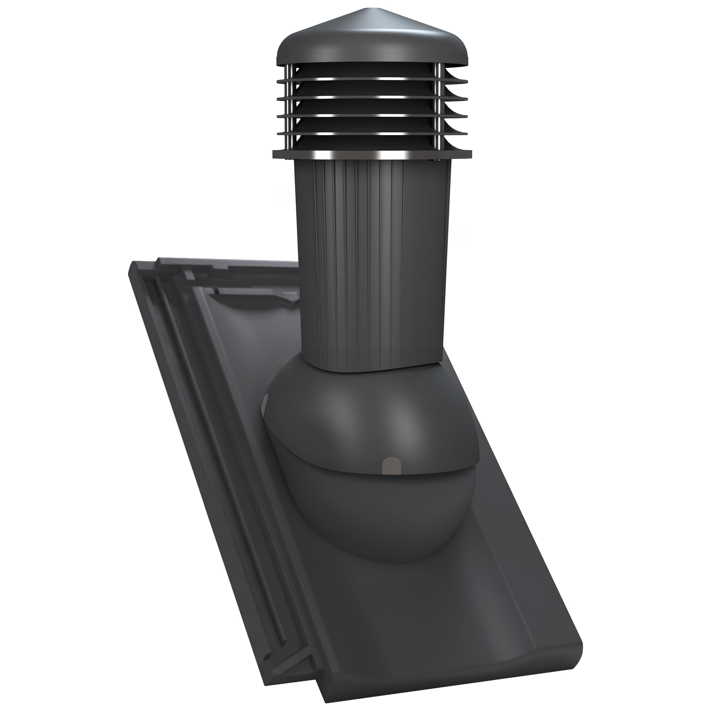 TILE PLUS DN 125 - Kompletny kominek wentylacyjny z profilowanym przejściem dachowym, montowany bezpośrednio na dachówce. Specjalne kanały odprowadzają skropliny (kondensat) na pokrycie dachowe.