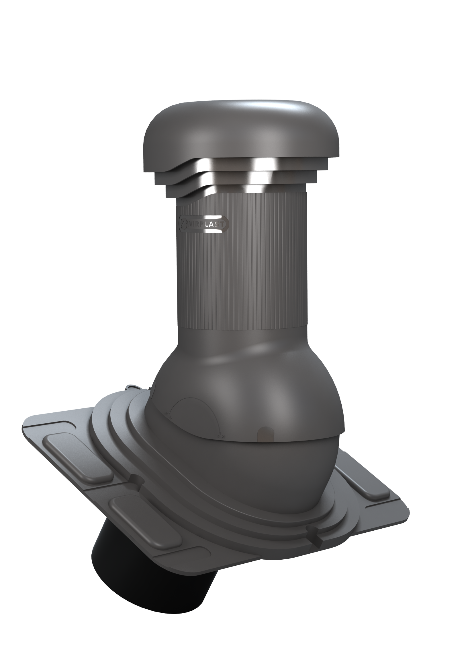UNIWERSAL PRO DN 150 - Kompletny kominek wentylacyjny z profilowanym przejściem dachowym, montowany bezpośrednio na blachodachówce i pokryciach profilowanych. Specjalne kanały odprowadzają skropliny (kondensat) na pokrycie dachowe.