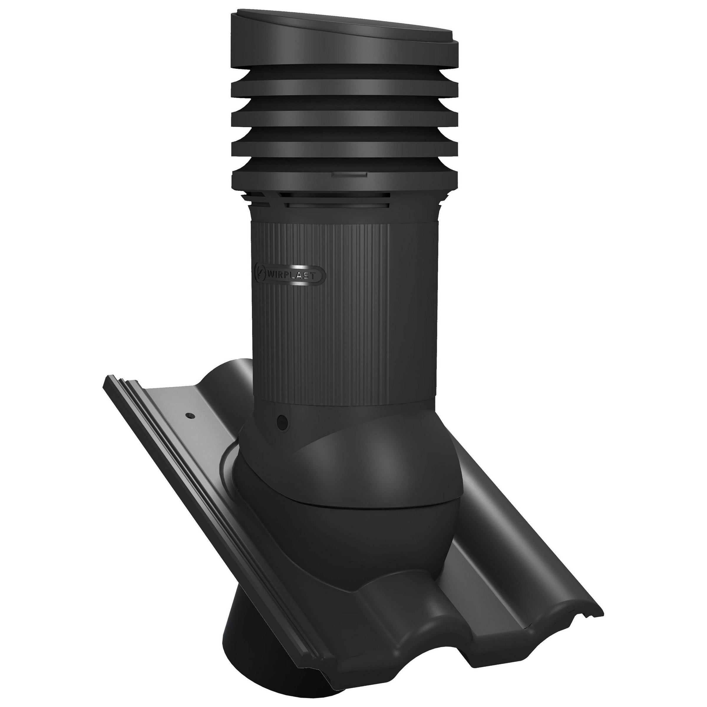 TILE EVO DN 150 - Kompletny kominek wentylacyjny z profilowanym przejściem dachowym, montowany bezpośrednio na dachówce. Wersja izolowana, która zapobiega kondensacji pary wodnej w przewodzie wentylacyjnym, najczęściej zauważalnej w okresie zimowym.