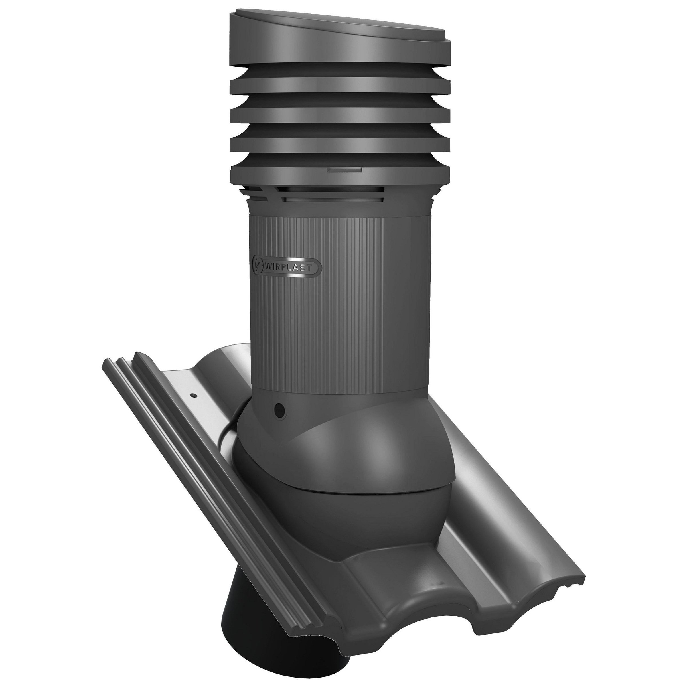 TILE EVO DN 150 - Kompletny kominek wentylacyjny z profilowanym przejściem dachowym, montowany bezpośrednio na dachówce. Specjalne kanały odprowadzają skropliny (kondensat) na pokrycie dachowe.