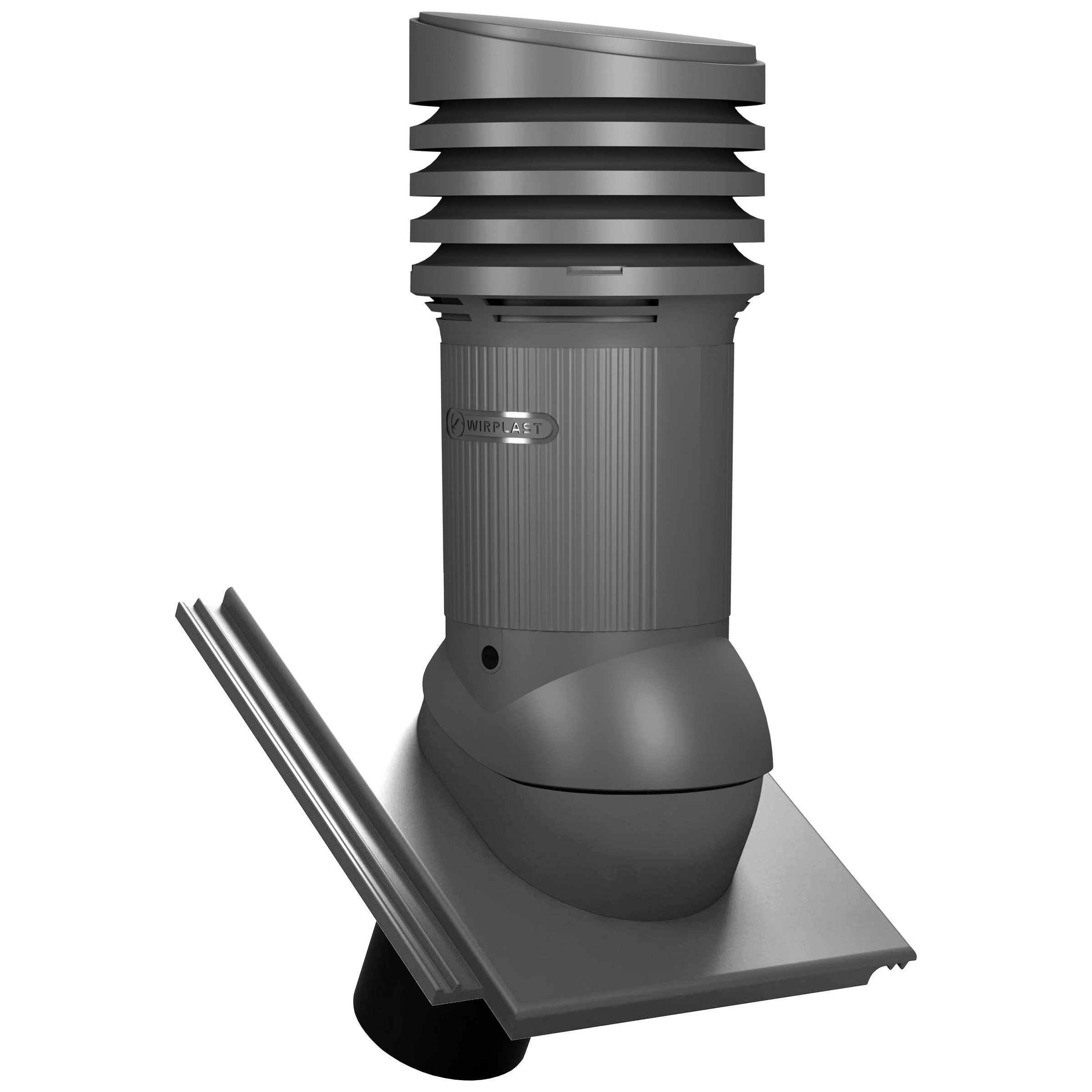 TILE EVO DN 150 - Kompletny kominek wentylacyjny z profilowanym przejściem dachowym, montowany bezpośrednio na dachówce. Specjalne kanały odprowadzają skropliny (kondensat) na pokrycie dachowe.