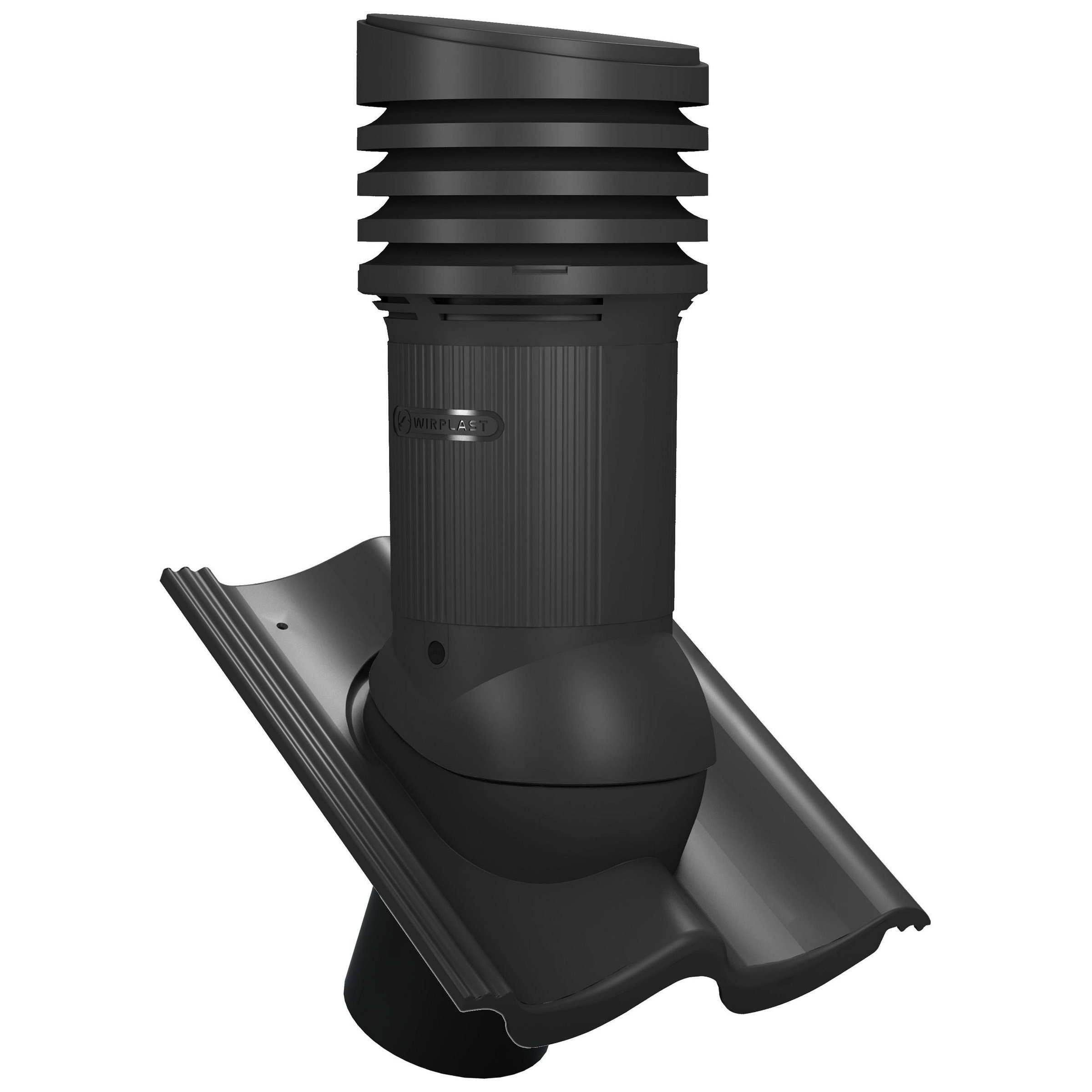 TILE EVO DN 150 - Kompletny kominek wentylacyjny z profilowanym przejściem dachowym, montowany bezpośrednio na dachówce. Specjalne kanały odprowadzają skropliny (kondensat) na pokrycie dachowe.