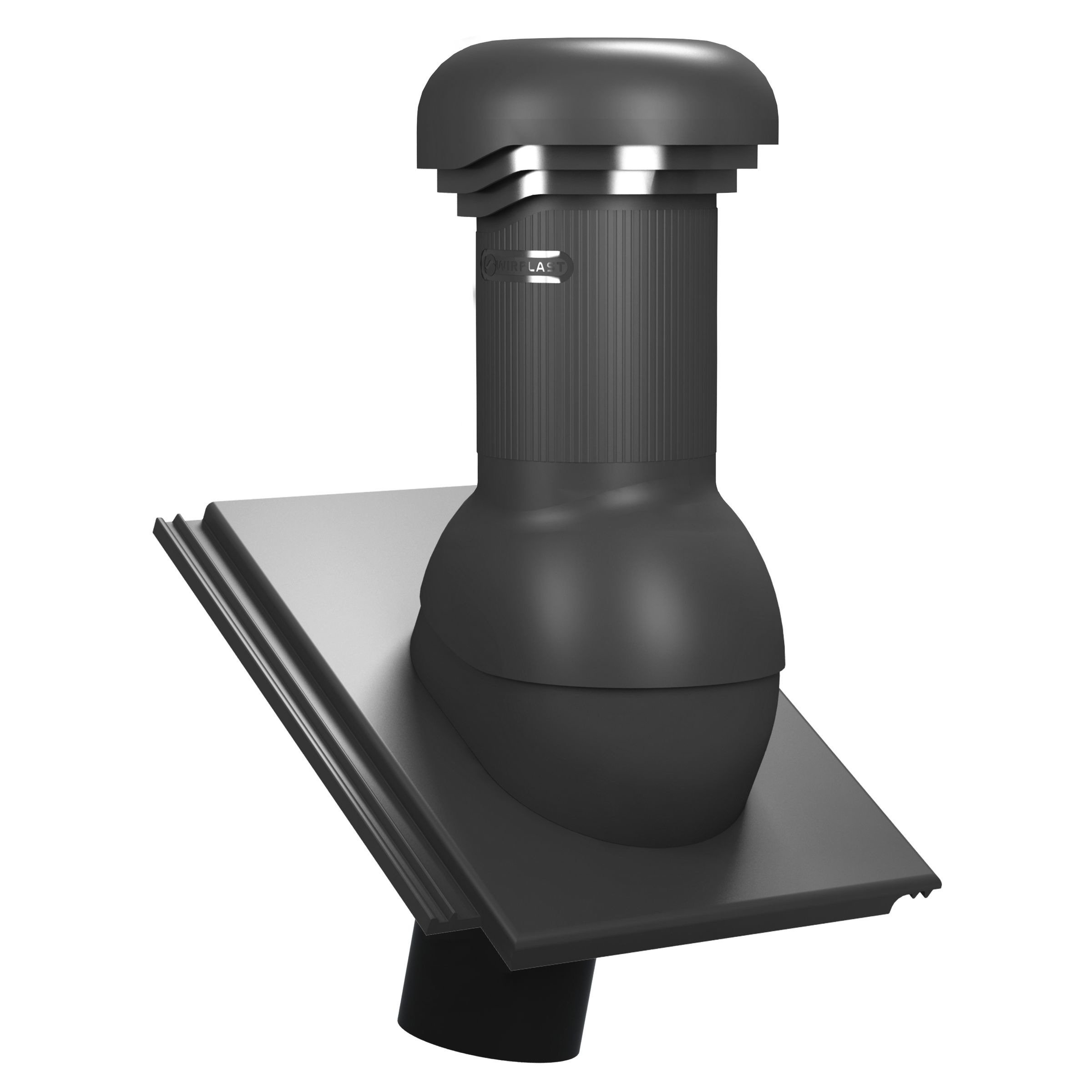 TILE PRO DN 150 - Kompletny kominek wentylacyjny z profilowanym przejściem dachowym, montowany bezpośrednio na dachówce. Specjalne kanały odprowadzają skropliny (kondensat) na pokrycie dachowe.