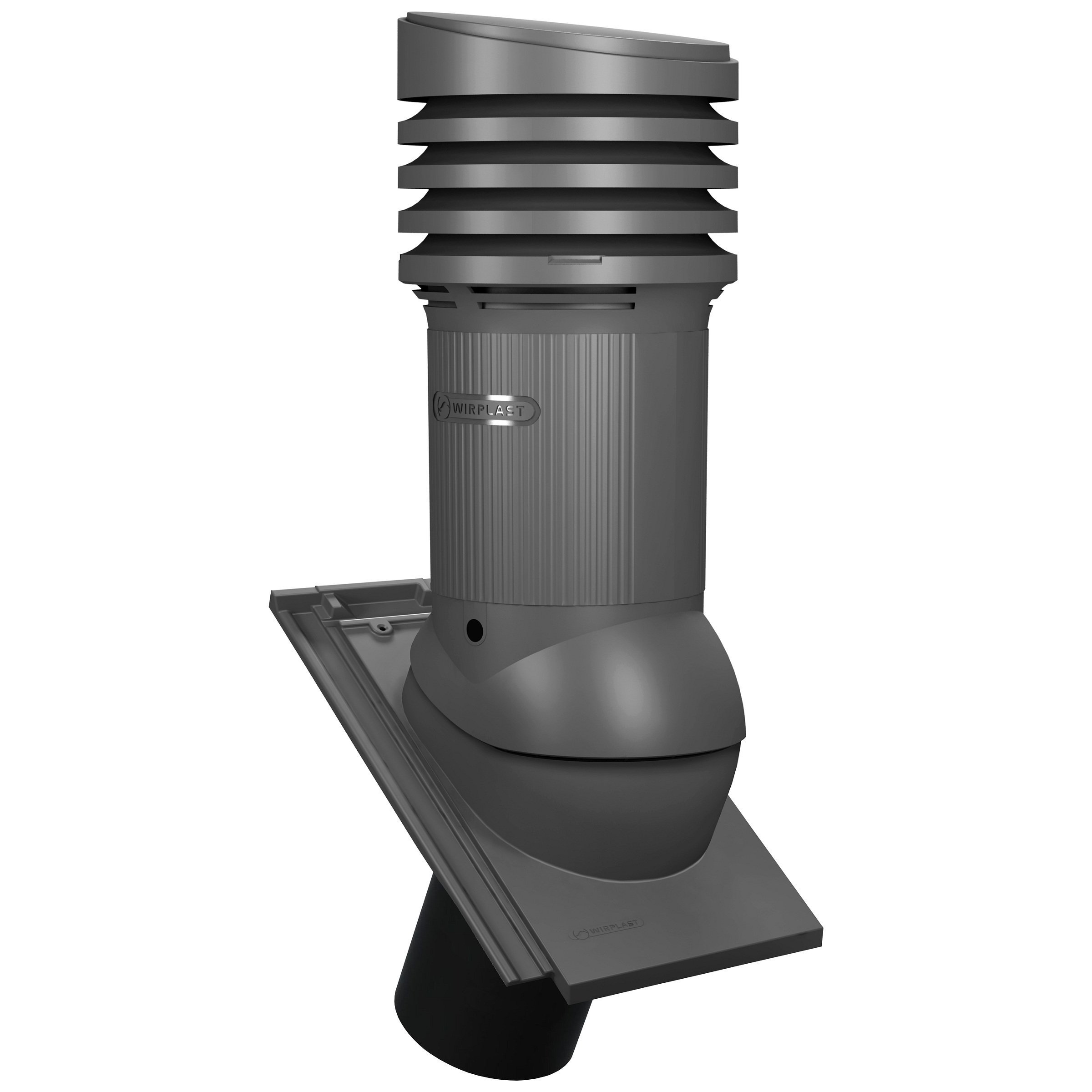 TILE EVO DN 150 - Kompletny kominek wentylacyjny z profilowanym przejściem dachowym, montowany bezpośrednio na dachówce. Specjalne kanały odprowadzają skropliny (kondensat) na pokrycie dachowe.