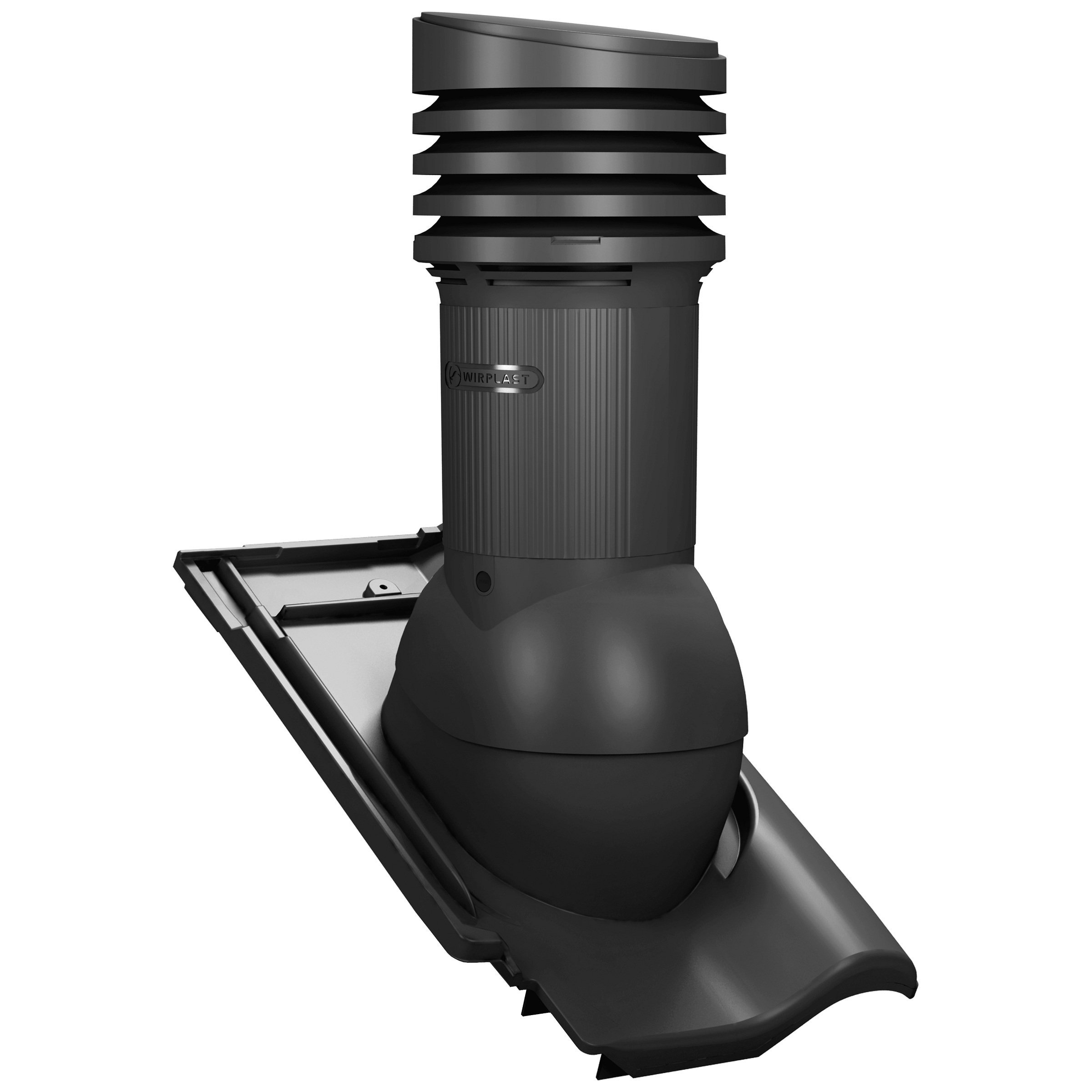 TILE EVO DN 150 - Kompletny kominek wentylacyjny z profilowanym przejściem dachowym, montowany bezpośrednio na dachówce. Specjalne kanały odprowadzają skropliny (kondensat) na pokrycie dachowe.