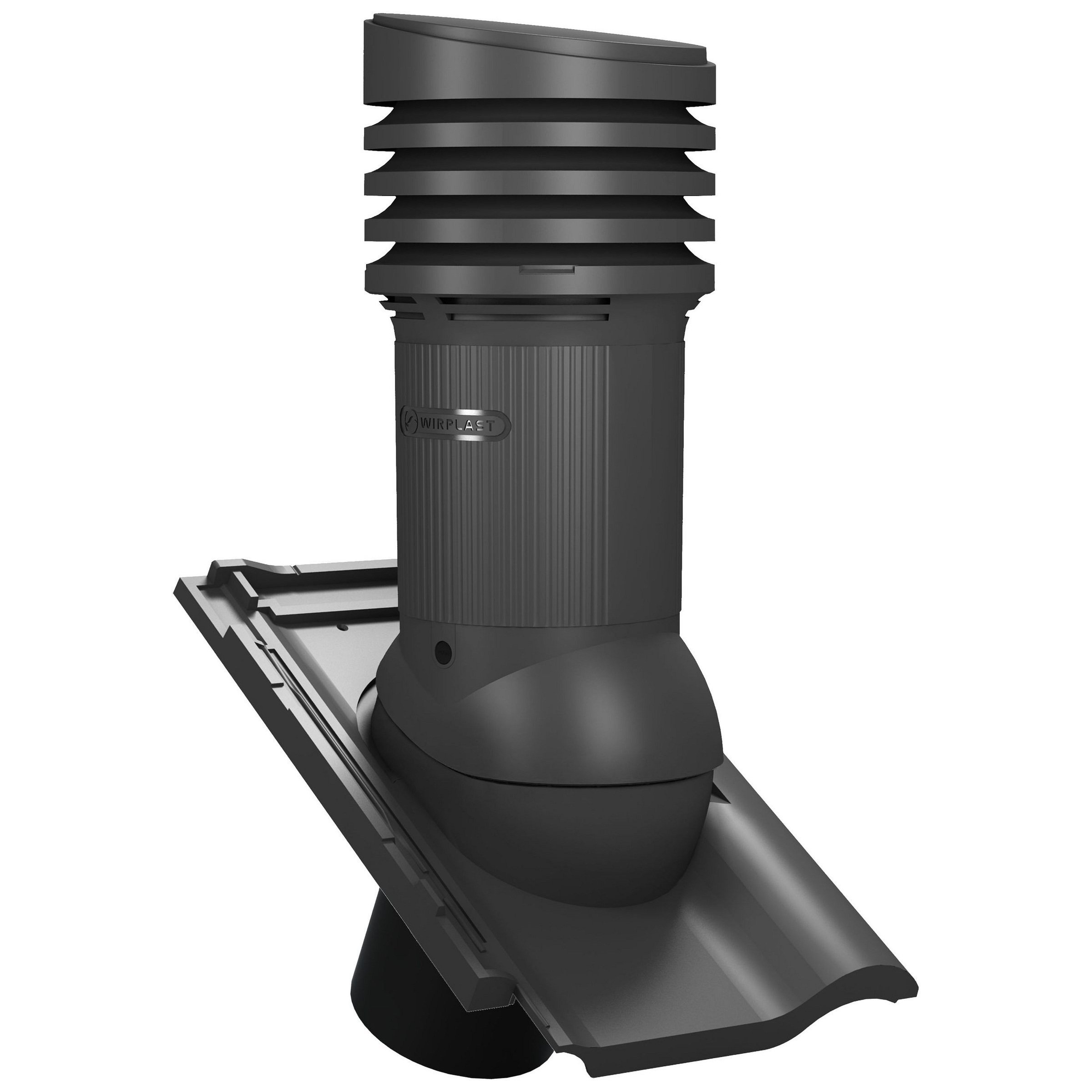 TILE EVO DN 150 - Kompletny kominek wentylacyjny z profilowanym przejściem dachowym, montowany bezpośrednio na dachówce. Specjalne kanały odprowadzają skropliny (kondensat) na pokrycie dachowe.