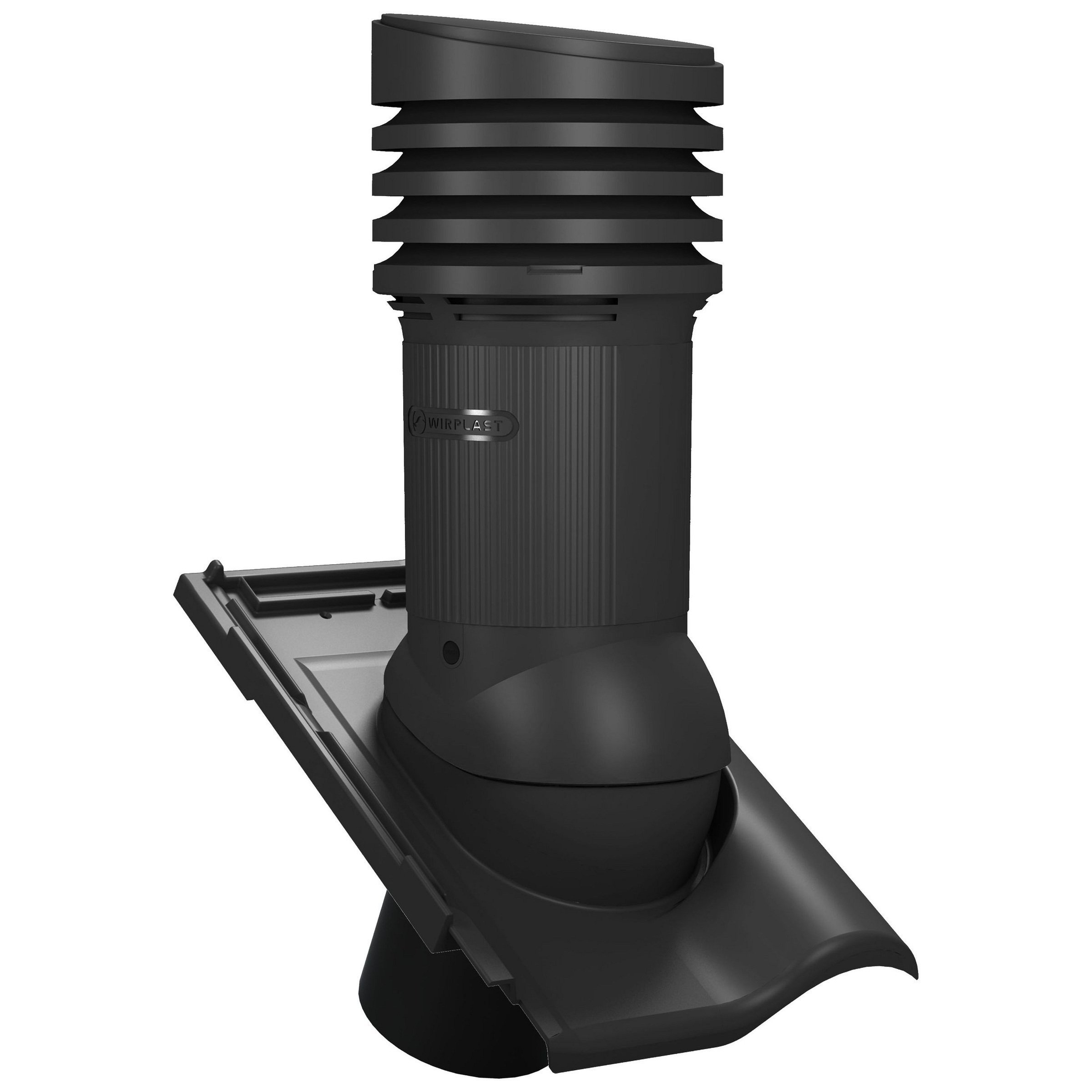 TILE EVO DN 150 - Kompletny kominek wentylacyjny z profilowanym przejściem dachowym, montowany bezpośrednio na dachówce. Specjalne kanały odprowadzają skropliny (kondensat) na pokrycie dachowe.