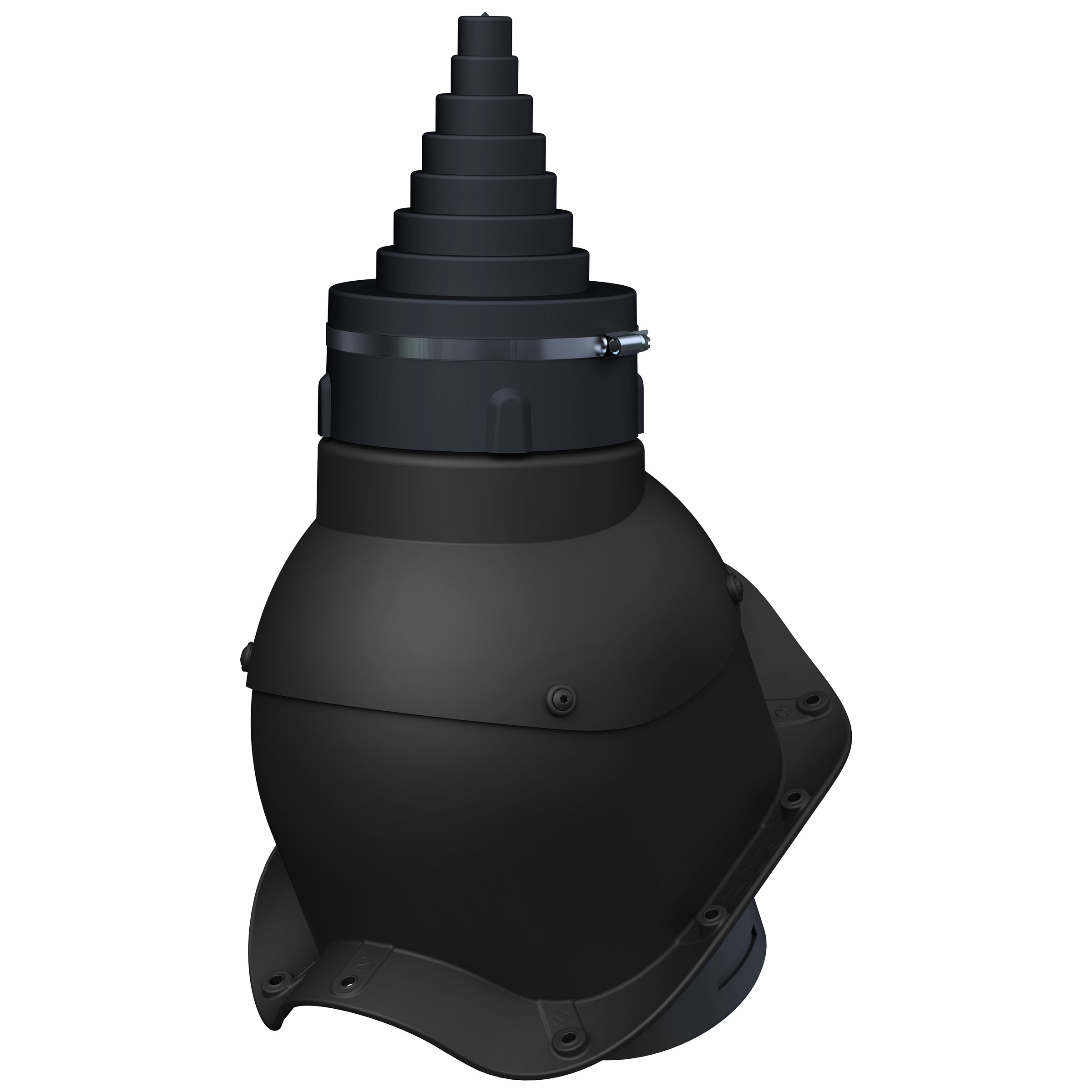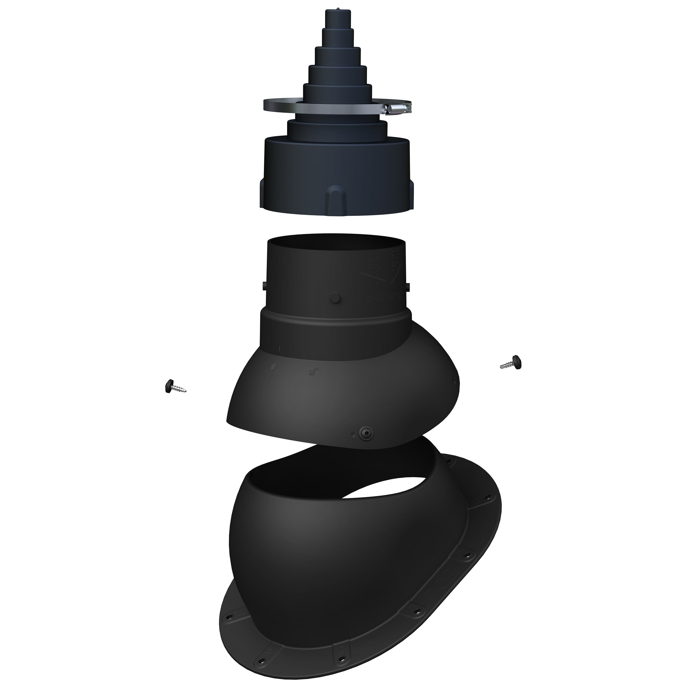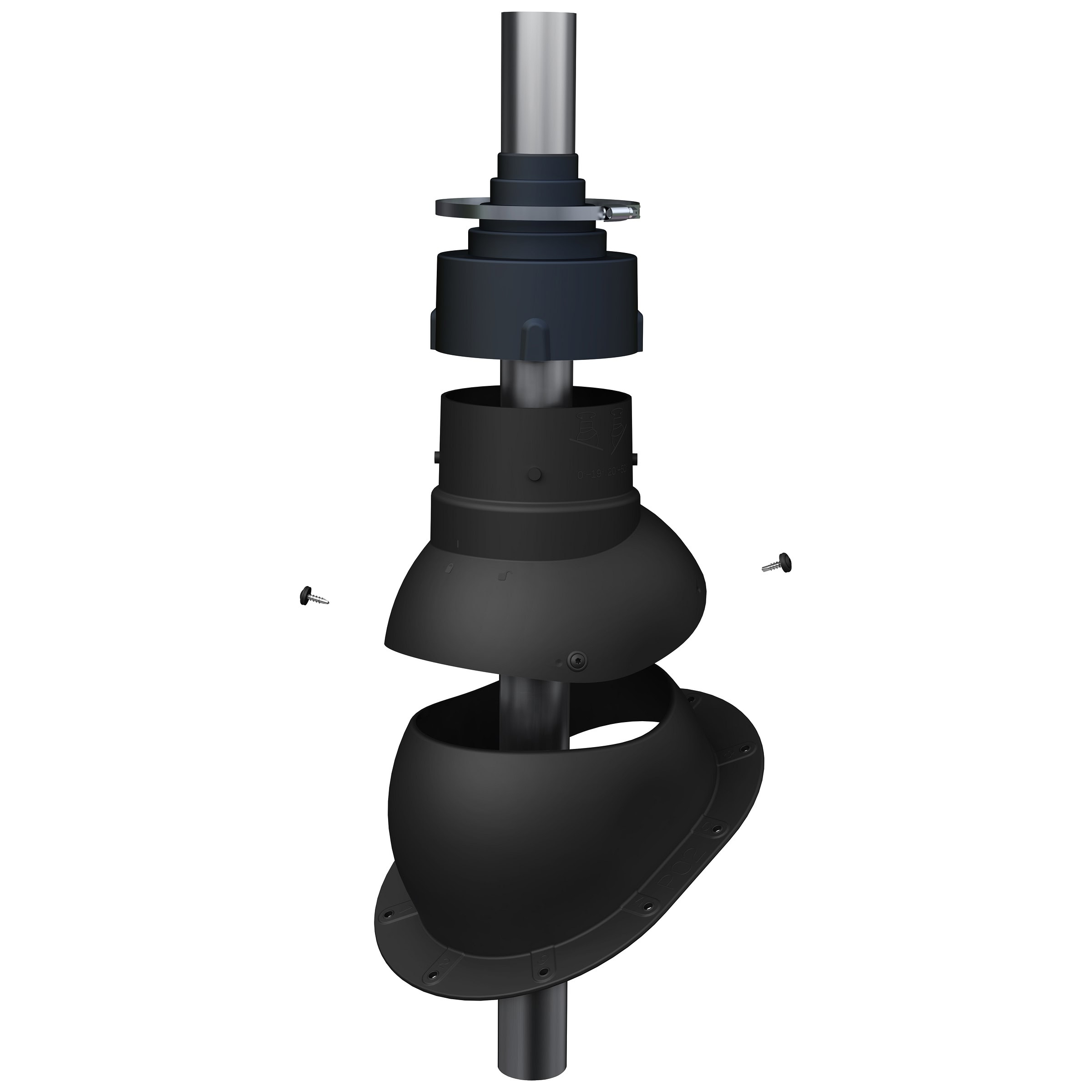 Przejście antenowe umożliwia łatwe i szczelne wyprowadzenie masztu antenowego ponad dach. Nasadka umożliwia dostosowanie otworu do średnicy masztu w zakresie 19-90 mm.