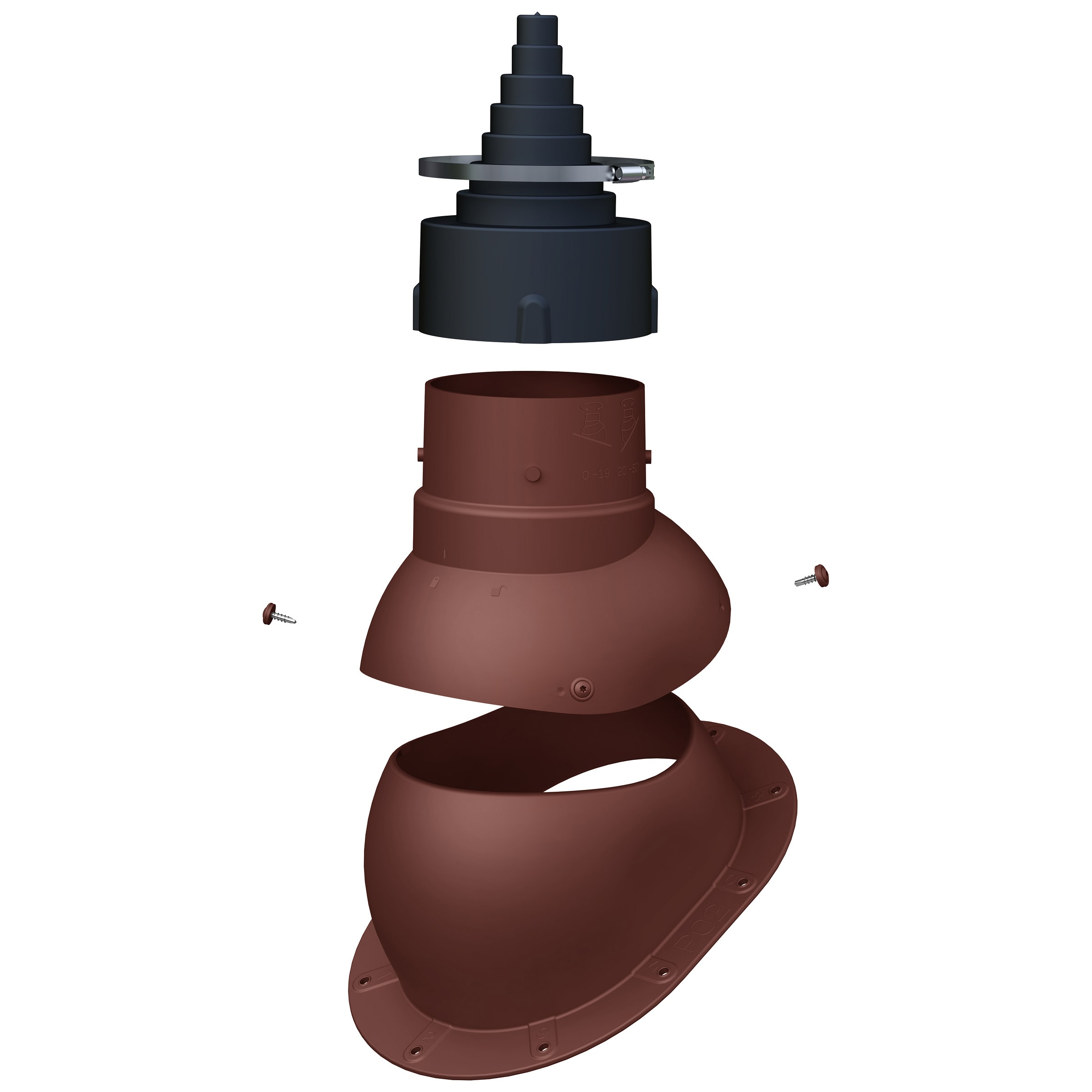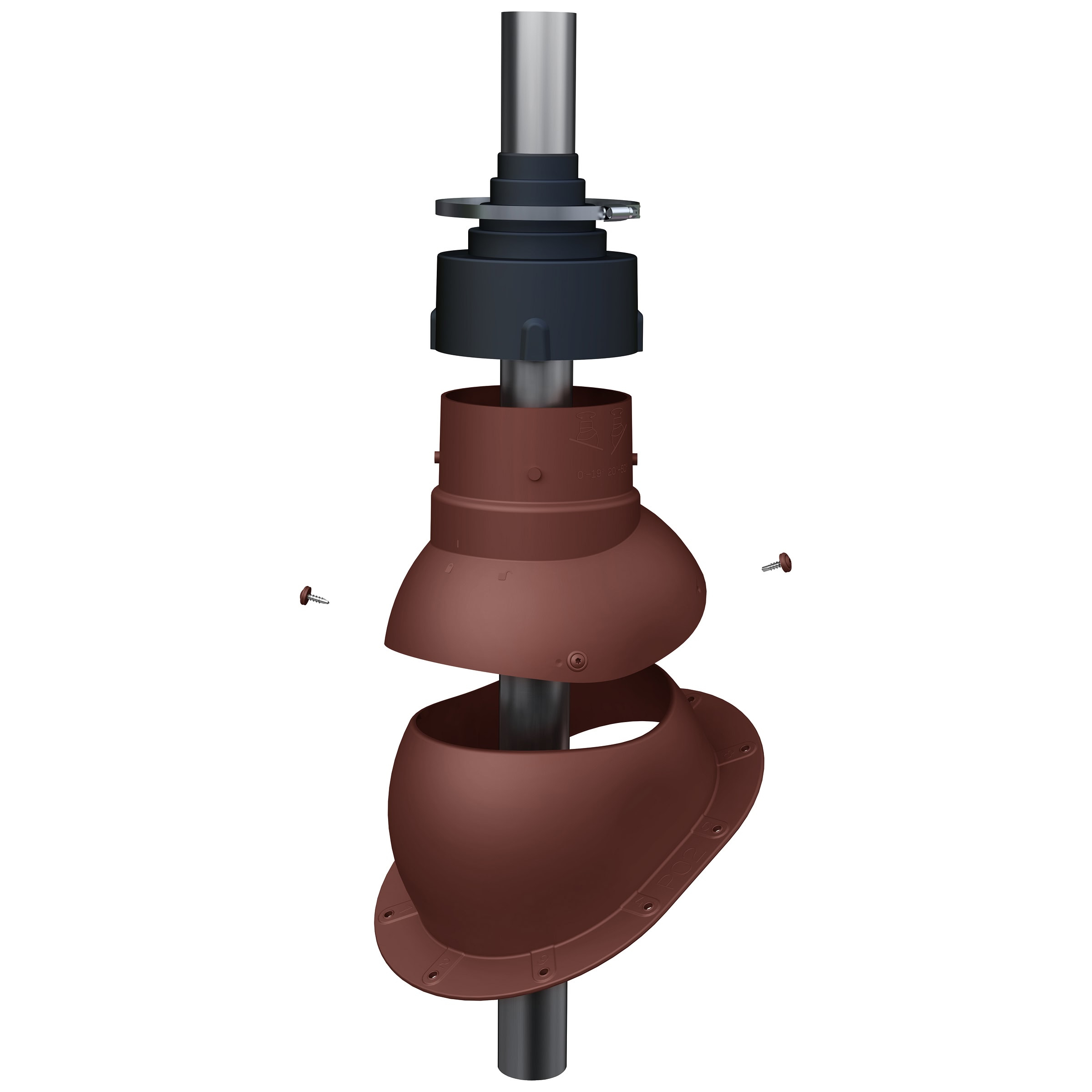 Przejście antenowe umożliwia łatwe i szczelne wyprowadzenie masztu antenowego ponad dach. Nasadka umożliwia dostosowanie otworu do średnicy masztu w zakresie 19-90 mm.