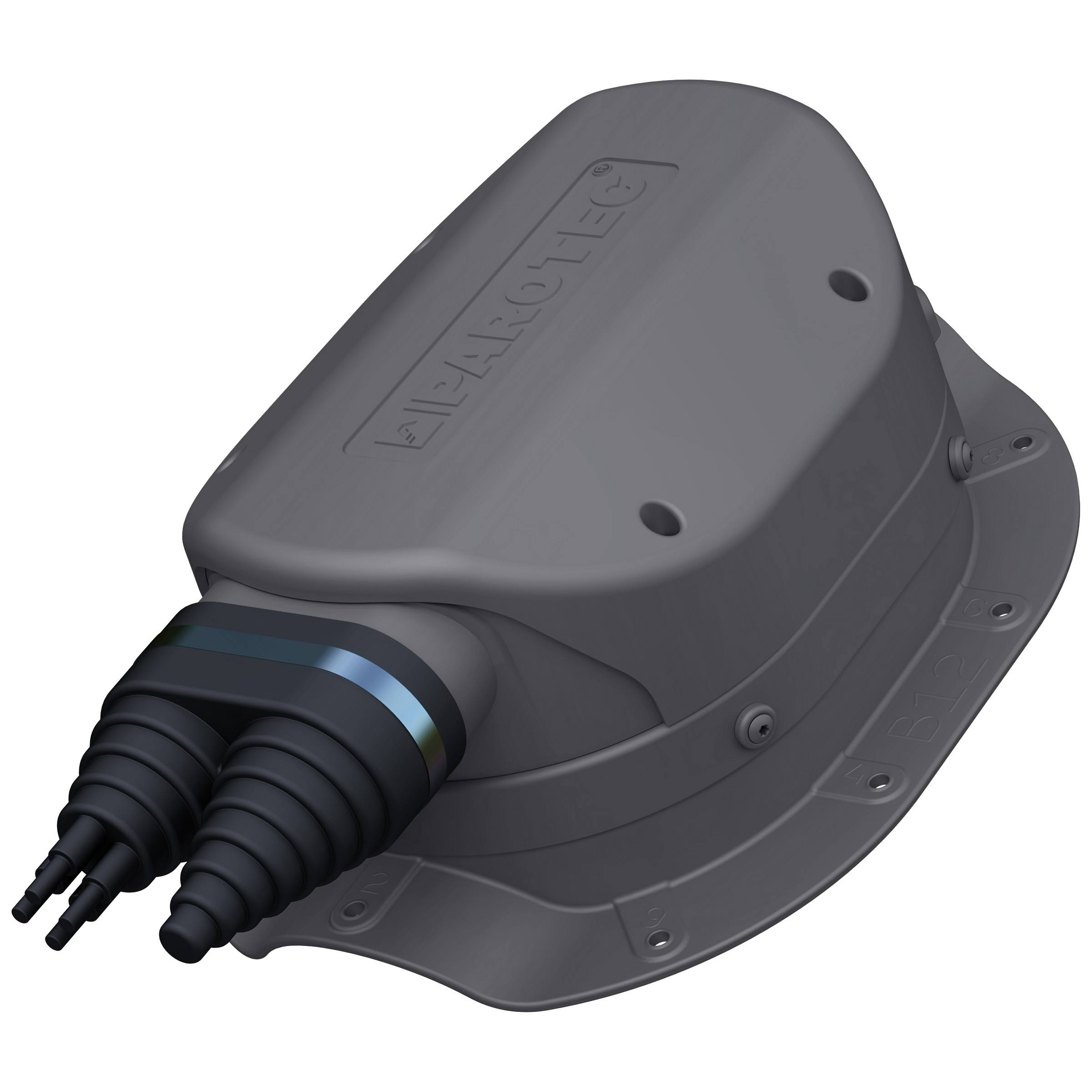 Przejście do solarów i fotowoltaiki to wodoszczelne rozwiązanie przeprowadzania instalacji solarnych i paneli fotowoltaicznych przez połać dachową. Produkt został zaprojektowany dla podwójnych i pojedynczych przewodów. Nasadka umożliwia dostosowanie otworu do średnicy w zakresie 6-48 mm.