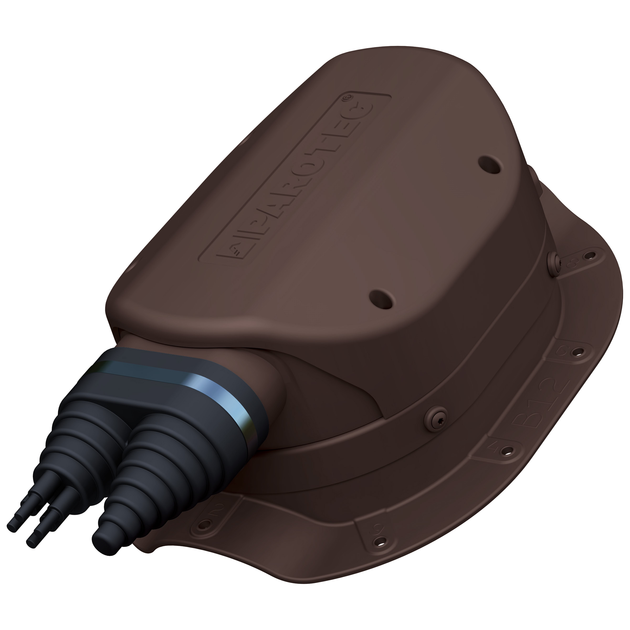 Przejście do solarów i fotowoltaiki to wodoszczelne rozwiązanie przeprowadzania instalacji solarnych i paneli fotowoltaicznych przez połać dachową. Produkt został zaprojektowany dla podwójnych i pojedynczych przewodów. Nasadka umożliwia dostosowanie otworu do średnicy w zakresie 6-48 mm.
