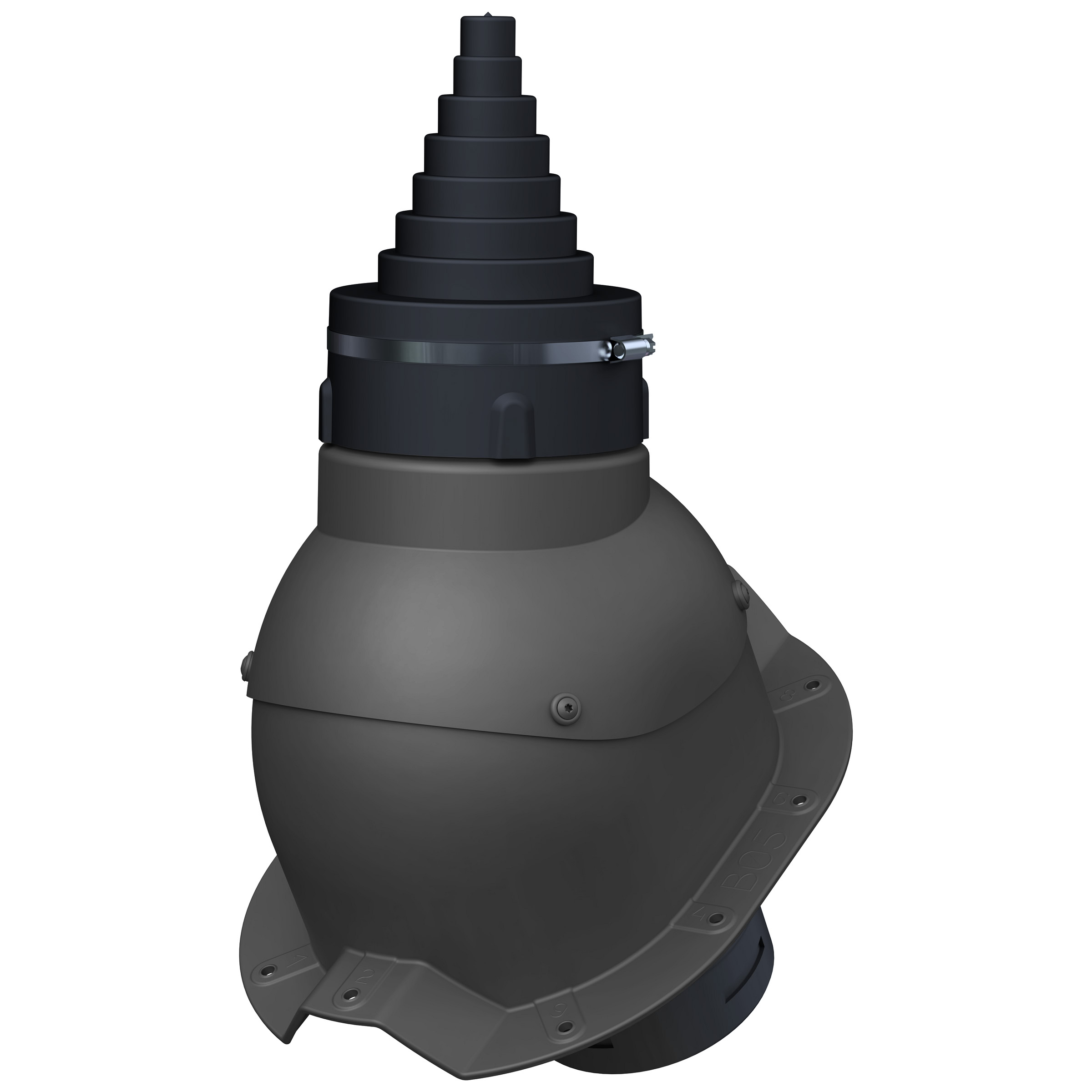 Przejście antenowe umożliwia łatwe i szczelne wyprowadzenie masztu antenowego ponad dach. Nasadka umożliwia dostosowanie otworu do średnicy masztu w zakresie 19-90 mm.