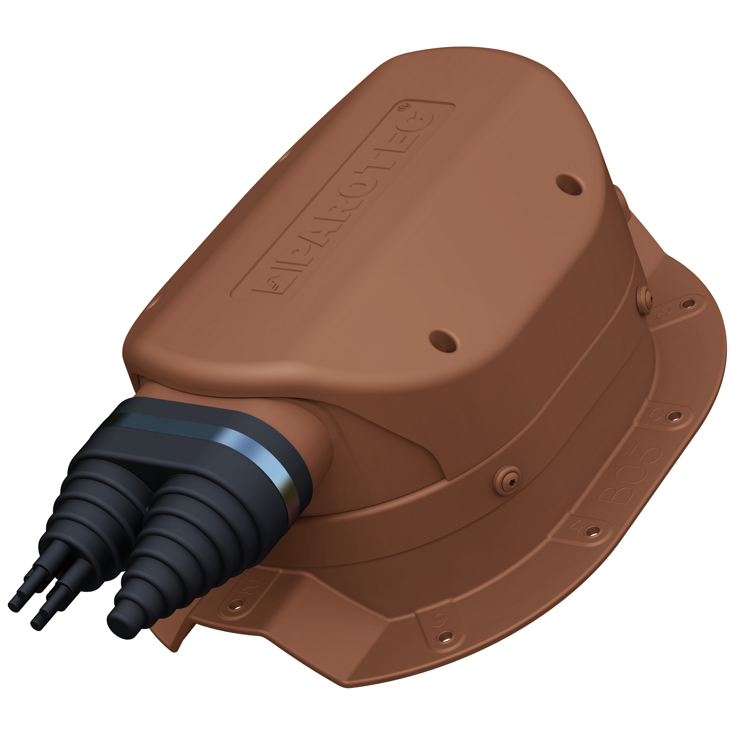 Przejście do solarów i fotowoltaiki to wodoszczelne rozwiązanie przeprowadzania instalacji solarnych i paneli fotowoltaicznych przez połać dachową. Produkt został zaprojektowany dla podwójnych i pojedynczych przewodów. Nasadka umożliwia dostosowanie otworu do średnicy w zakresie 5-47 mm.