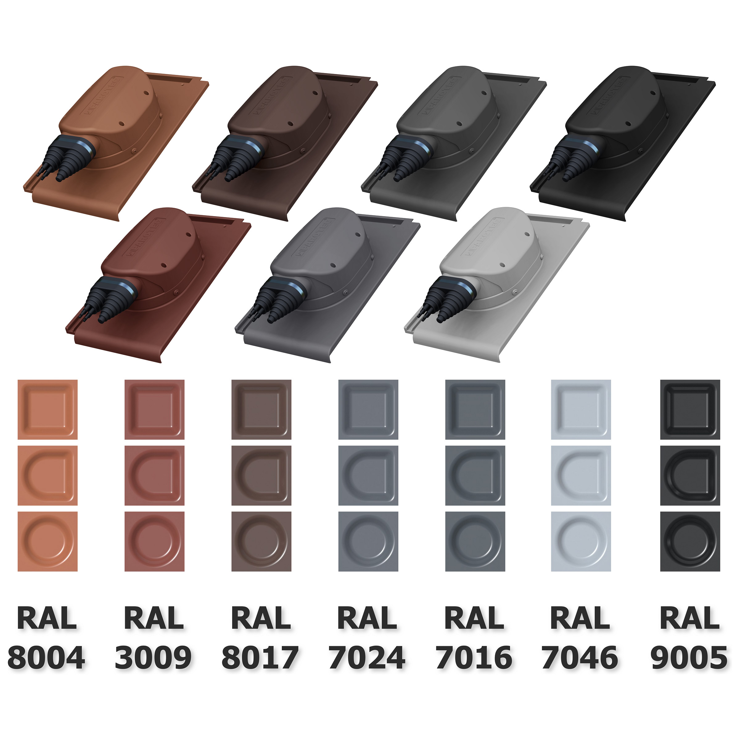 Przejście do solarów i fotowoltaiki to wodoszczelne rozwiązanie przeprowadzania instalacji solarnych i paneli fotowoltaicznych przez połać dachową. Produkt został zaprojektowany dla podwójnych i pojedynczych przewodów. Nasadka umożliwia dostosowanie otworu do średnicy w zakresie 5-47 mm.