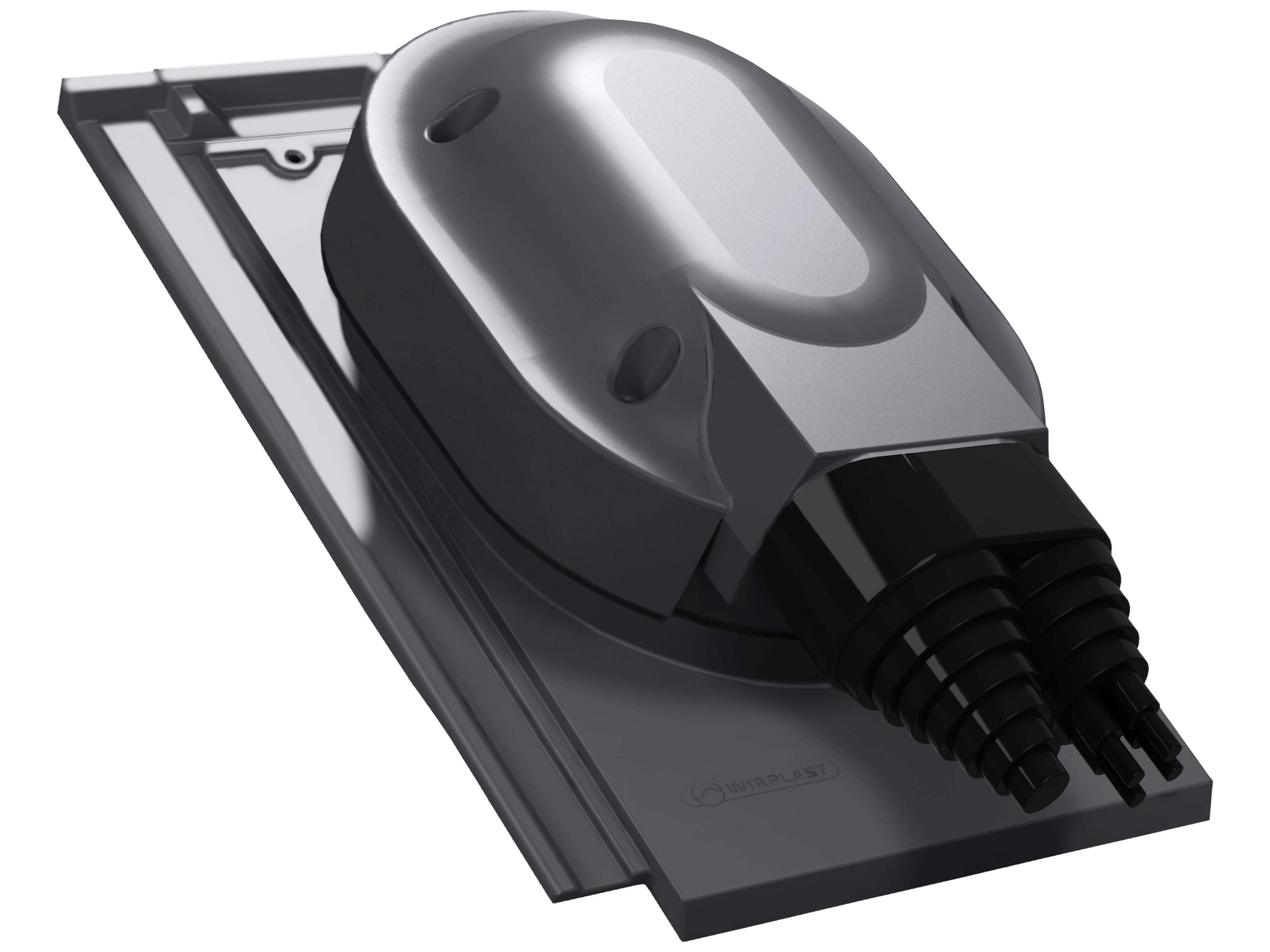 Przejście do solarów i fotowoltaiki to wodoszczelne rozwiązanie przeprowadzania instalacji solarnych i paneli fotowoltaicznych przez połać dachową. Produkt został zaprojektowany dla podwójnych i pojedynczych przewodów. Nasadka umożliwia dostosowanie otworu do średnicy w zakresie 5-47mm.