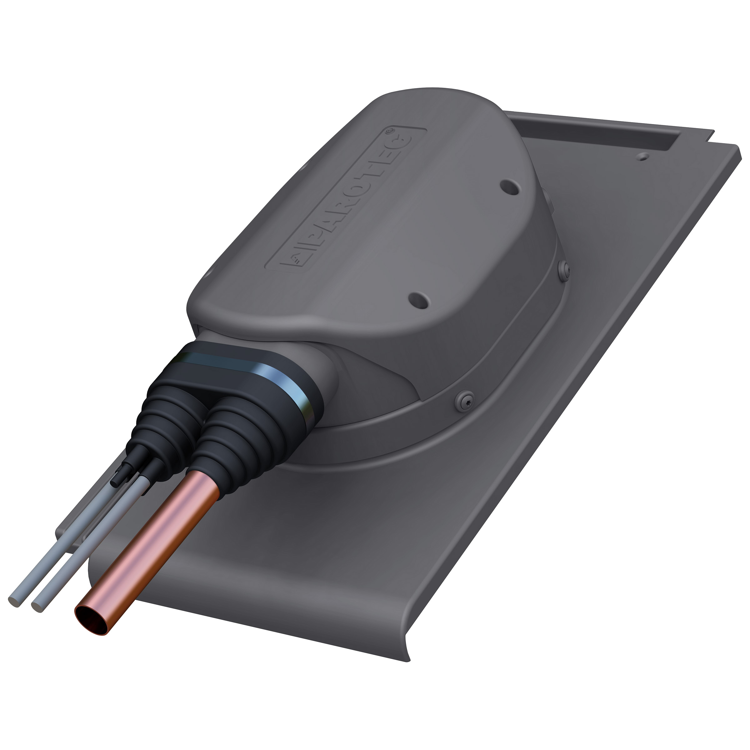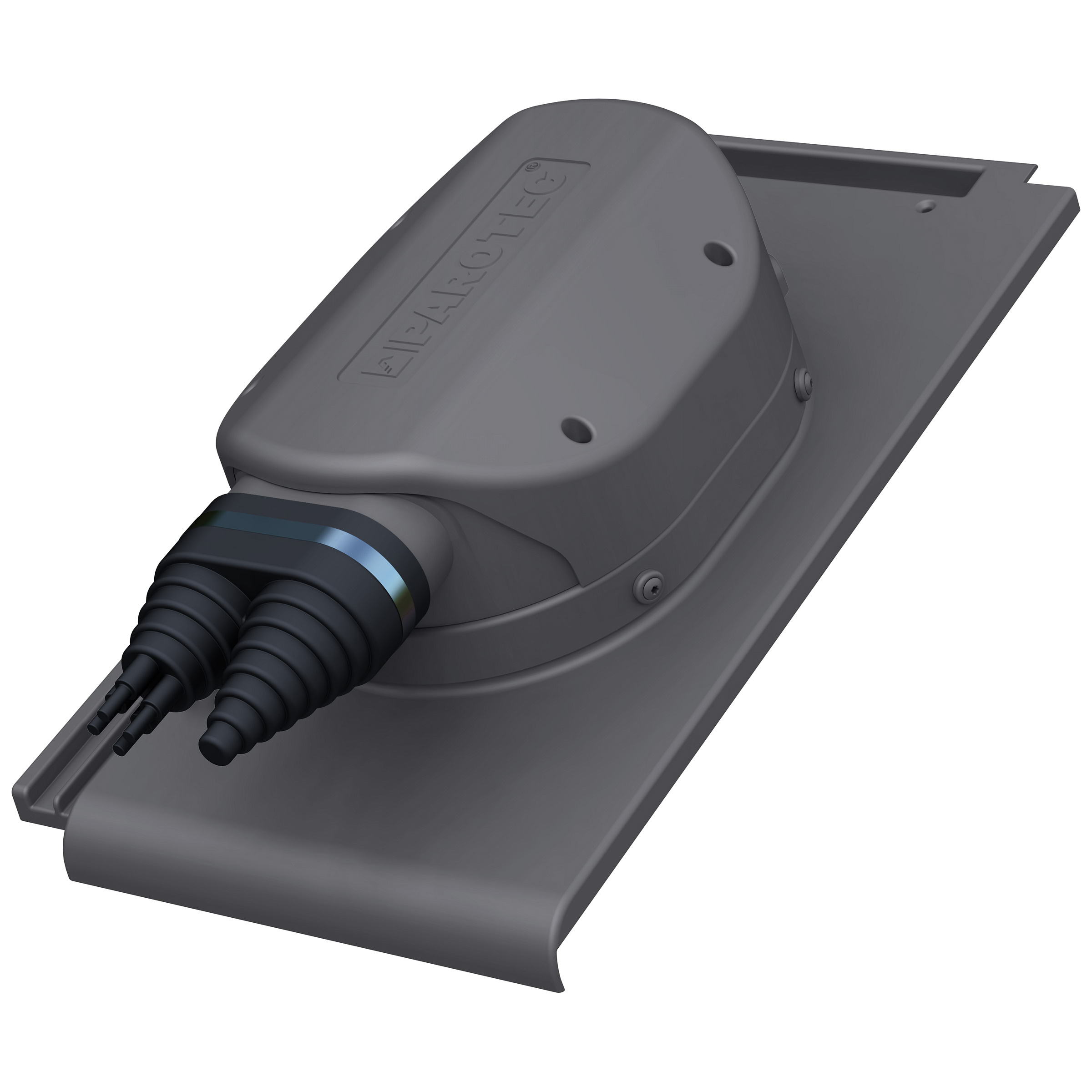 Przejście do solarów i fotowoltaiki to wodoszczelne rozwiązanie przeprowadzania instalacji solarnych i paneli fotowoltaicznych przez połać dachową. Produkt został zaprojektowany dla podwójnych i pojedynczych przewodów. Nasadka umożliwia dostosowanie otworu do średnicy w zakresie 6-48 mm.