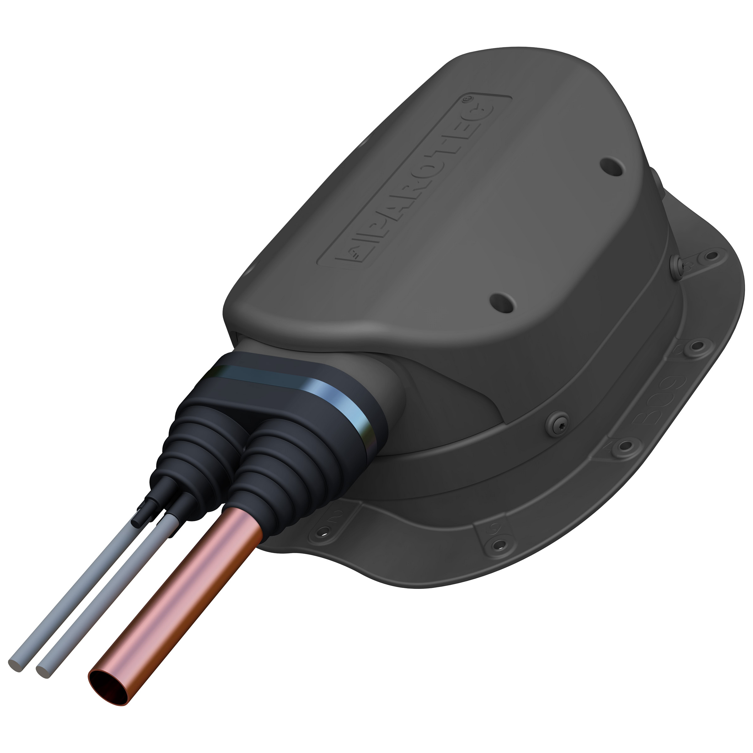 Przejście do solarów i fotowoltaiki to wodoszczelne rozwiązanie przeprowadzania instalacji solarnych i paneli fotowoltaicznych przez połać dachową. Produkt został zaprojektowany dla podwójnych i pojedynczych przewodów. Nasadka umożliwia dostosowanie otworu do średnicy w zakresie 6-48 mm.