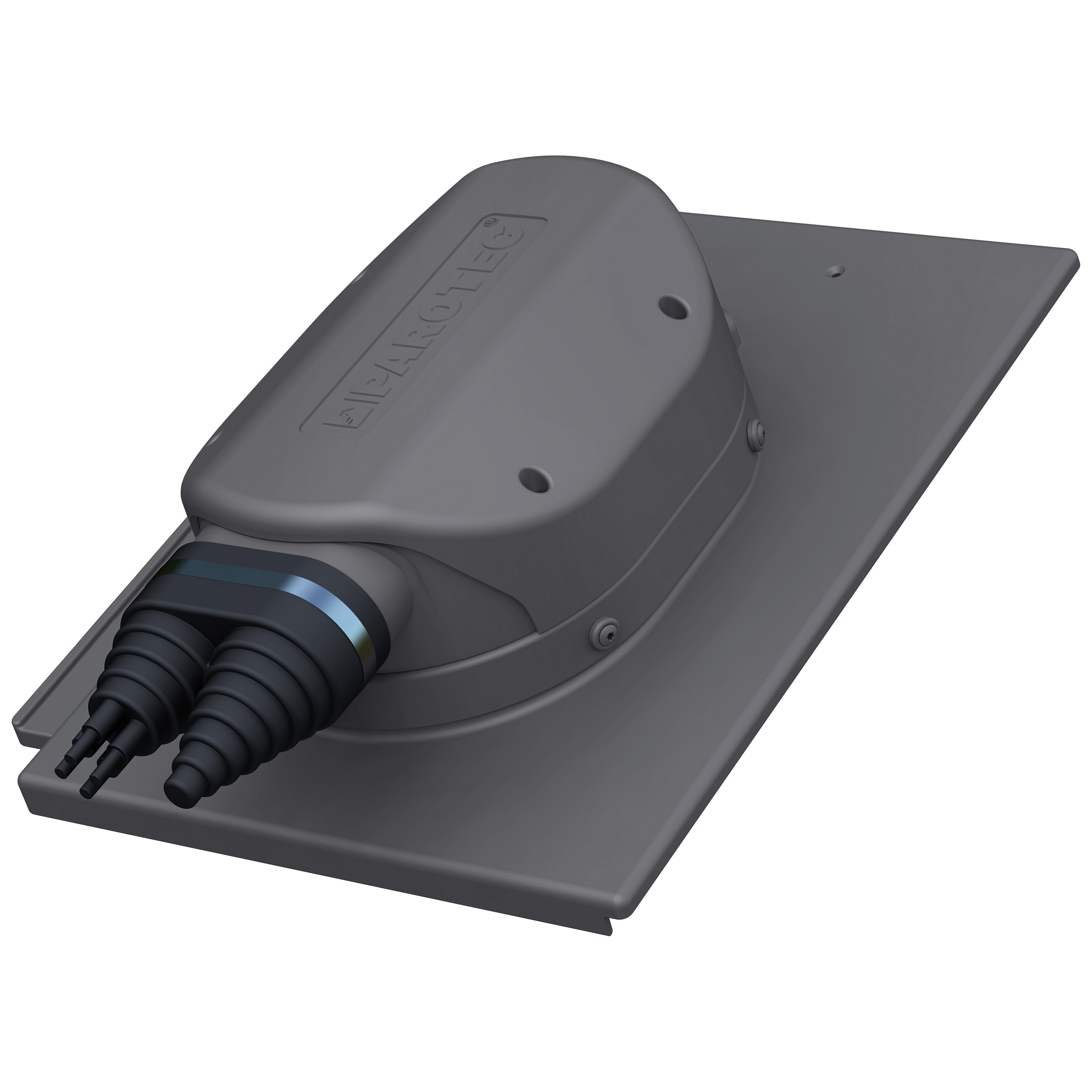 Przejście do solarów i fotowoltaiki to wodoszczelne rozwiązanie przeprowadzania instalacji solarnych i paneli fotowoltaicznych przez połać dachową. Produkt został zaprojektowany dla podwójnych i pojedynczych przewodów. Nasadka umożliwia dostosowanie otworu do średnicy w zakresie 6-48 mm.
