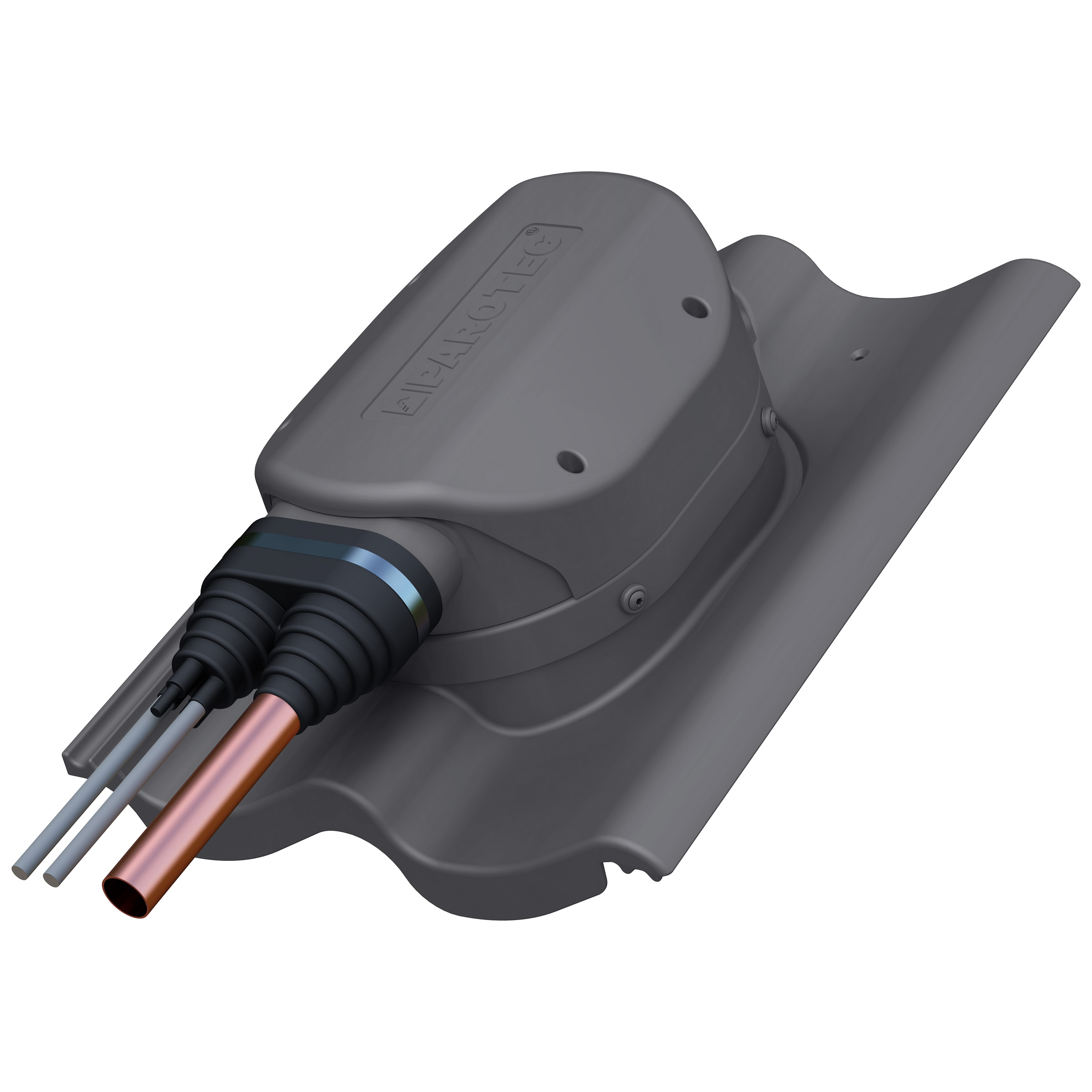 Przejście do solarów i fotowoltaiki to wodoszczelne rozwiązanie przeprowadzania instalacji solarnych i paneli fotowoltaicznych przez połać dachową. Produkt został zaprojektowany dla podwójnych i pojedynczych przewodów. Nasadka umożliwia dostosowanie otworu do średnicy w zakresie 6-48 mm.