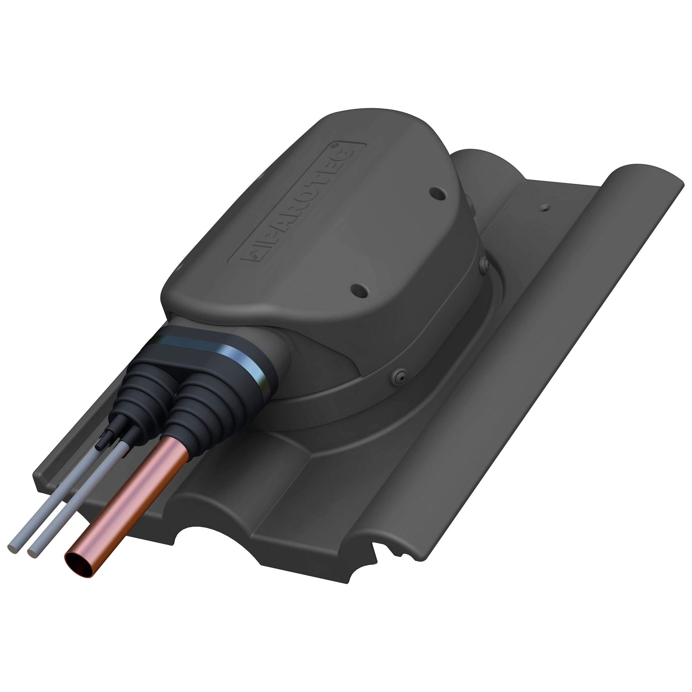 Przejście do solarów i fotowoltaiki to wodoszczelne rozwiązanie przeprowadzania instalacji solarnych i paneli fotowoltaicznych przez połać dachową. Produkt został zaprojektowany dla podwójnych i pojedynczych przewodów. Nasadka umożliwia dostosowanie otworu do średnicy w zakresie 6-48 mm.