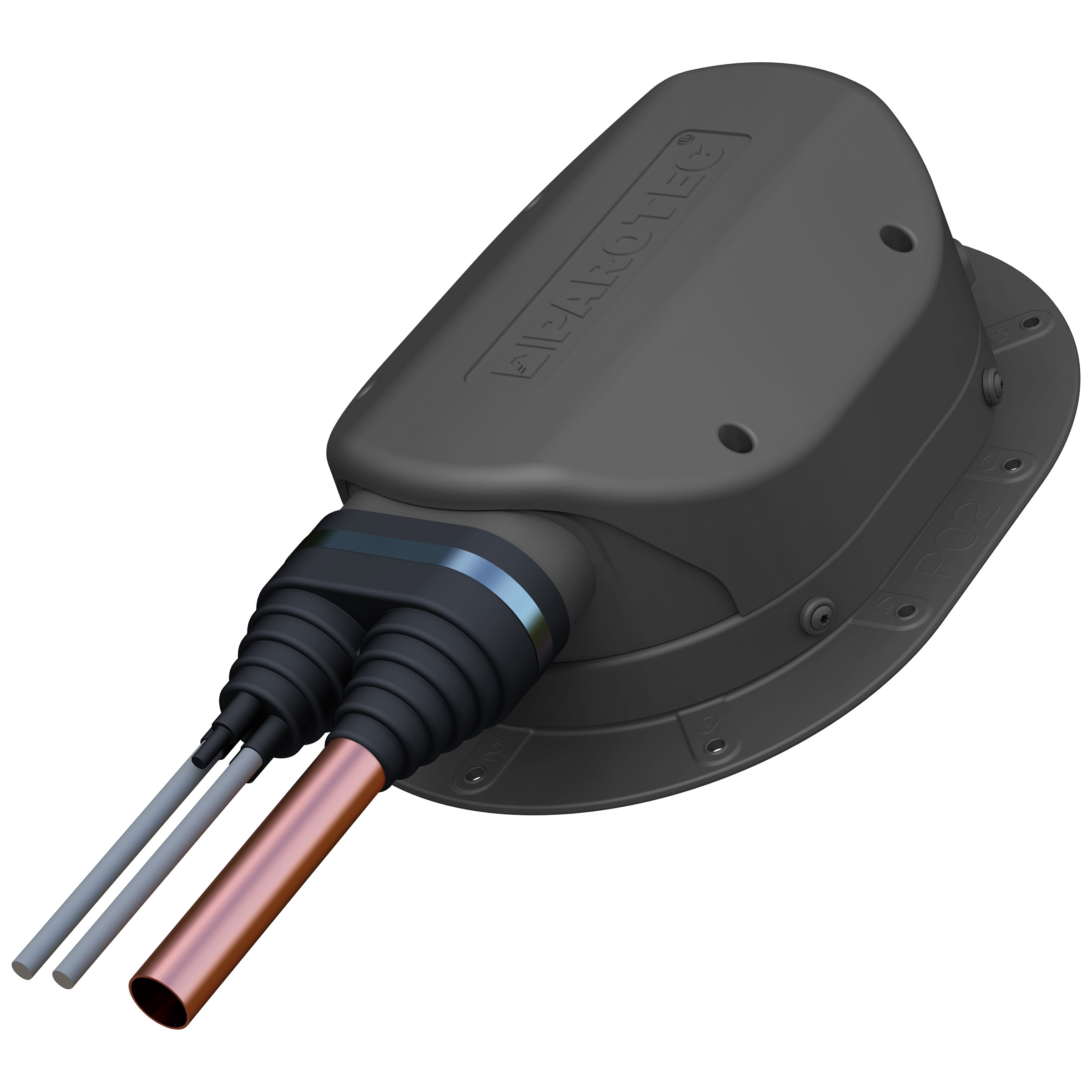 Przejście do solarów i fotowoltaiki to wodoszczelne rozwiązanie przeprowadzania instalacji solarnych i paneli fotowoltaicznych przez połać dachową. Produkt został zaprojektowany dla podwójnych i pojedynczych przewodów. Nasadka umożliwia dostosowanie otworu do średnicy w zakresie 6-48 mm.