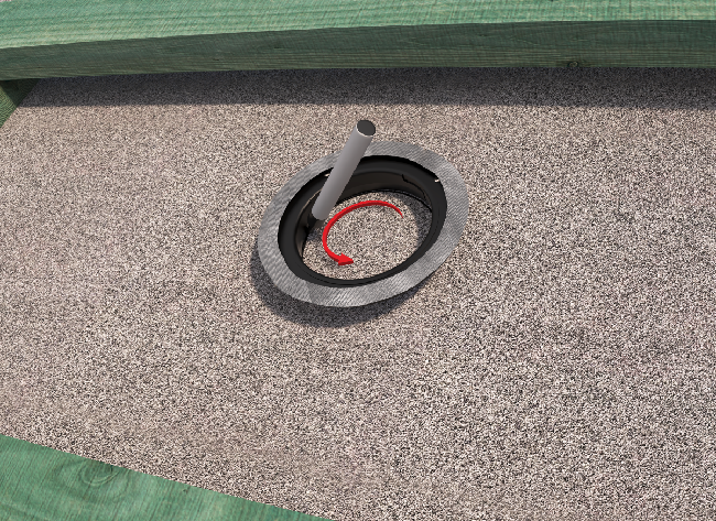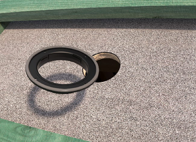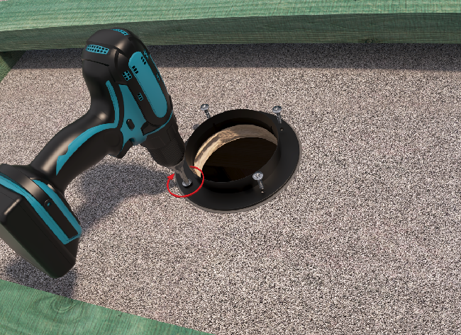 • Pierścień mocujący na wkręty do desek z butylem uszczelniającym.