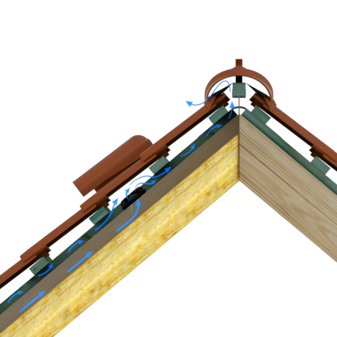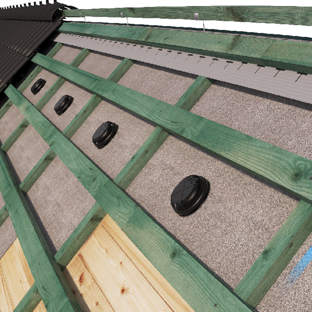 • Wywietrznik jest istotnym elementem systemu wentylacji dachu, odpowiadającym za sprawną cyrkulację powietrza pomiędzy newralgicznymi warstwami izolacji termicznej a poszyciem dachowym, takim jak pełne deskowanie.