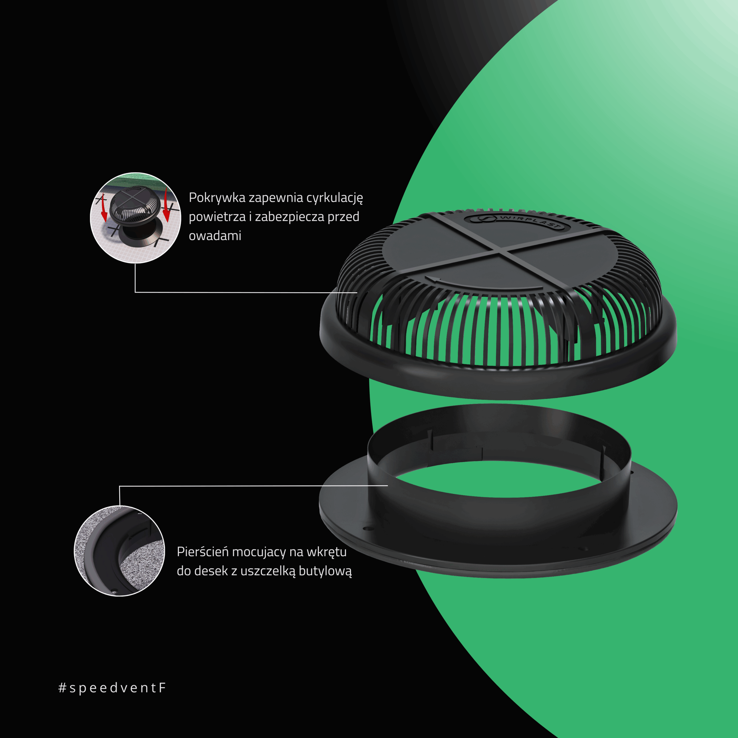 Konstrukcja wywietrznika została zaprojektowana w taki sposób, aby nie zaburzać ciągłości hydroizolacji i nie wpływać negatywnie na szczelność dachu.