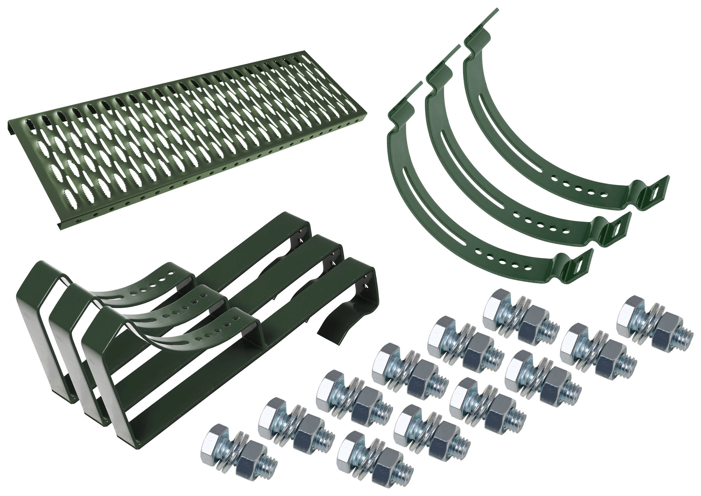 Podłużne i okrągłe otwory służą do połączenia ze sobą elementów przy pomocy śrub. Stopnie kominiarskie posiadają już zintegrowaną kołyskę.