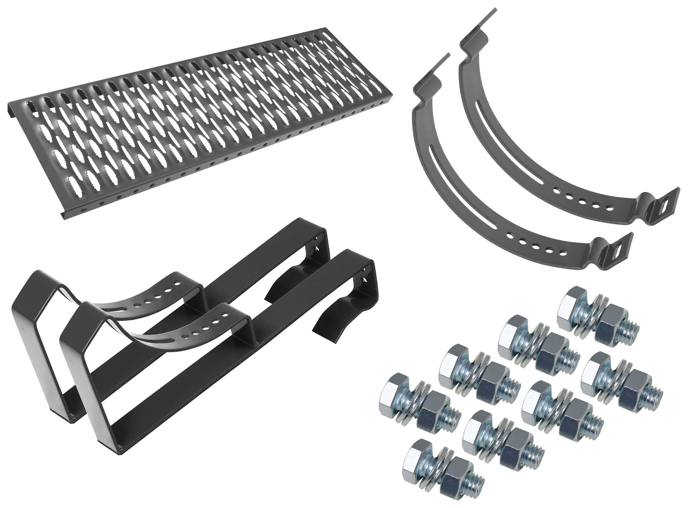 Podłużne i okrągłe otwory służą do połączenia ze sobą elementów przy pomocy śrub. Stopnie kominiarskie posiadają już zintegrowaną kołyskę.