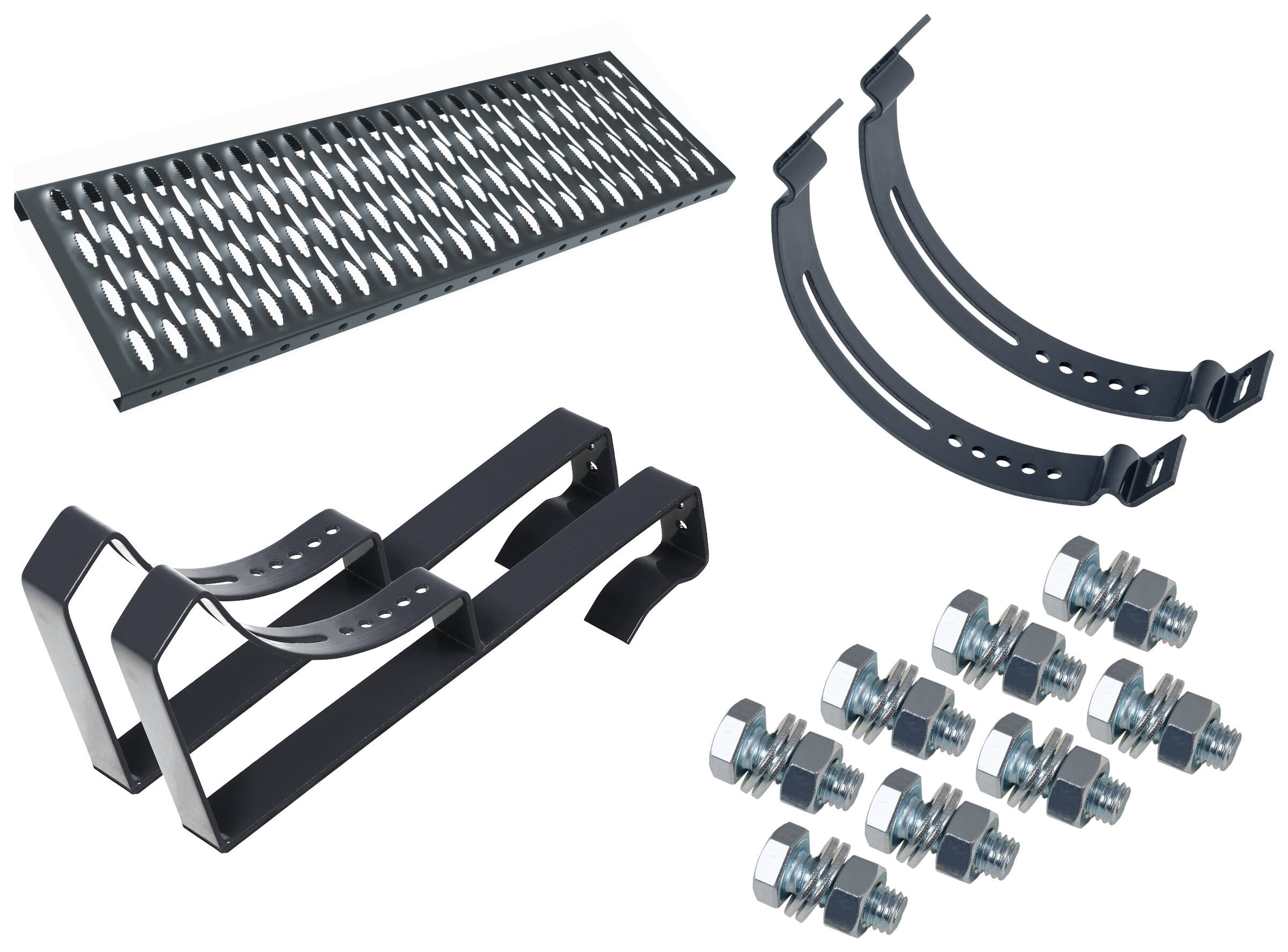Podłużne i okrągłe otwory służą do połączenia ze sobą elementów przy pomocy śrub. Stopnie kominiarskie posiadają już zintegrowaną kołyskę.